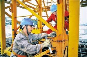 施工人员在安装脚架