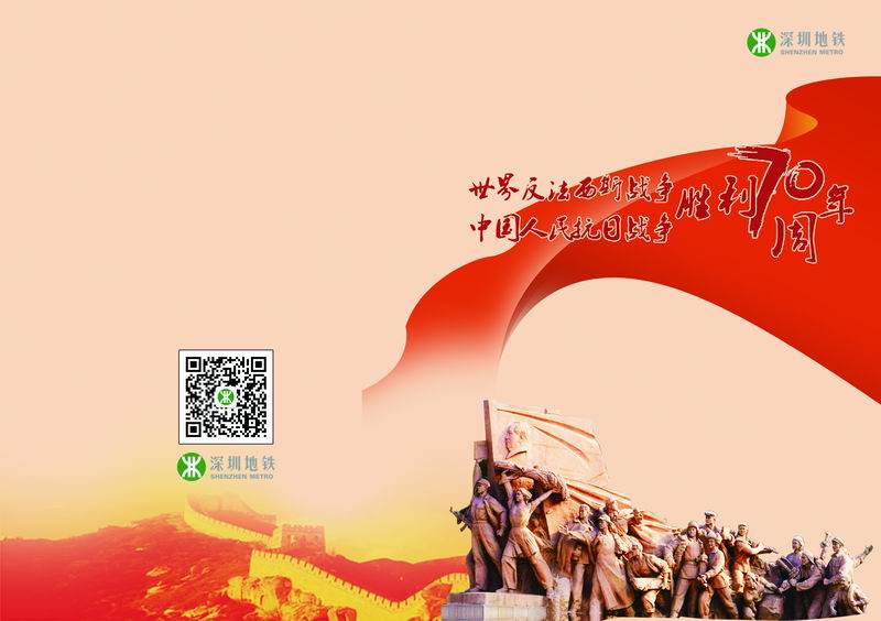 为纪念中国人民抗日战争暨世界反法西斯战争胜利70周年,资源开发分公司经精心策划,于近日限量发行《中国人民抗日战争暨世界反法西斯战争胜利70周年》主题纪念票,,同时进一步提高了深圳地铁系列纪念票在广大市民消费层面的认知度,加强了地铁文化的品牌推广。