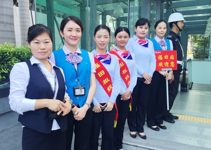 保洁队伍加强巡视,安排了高空清洁队伍,在十一号线开通的前夕,将福田枢纽里里外外打扫了一遍,保证福田枢纽以良好的面貌迎接地铁十一号线的开通。
