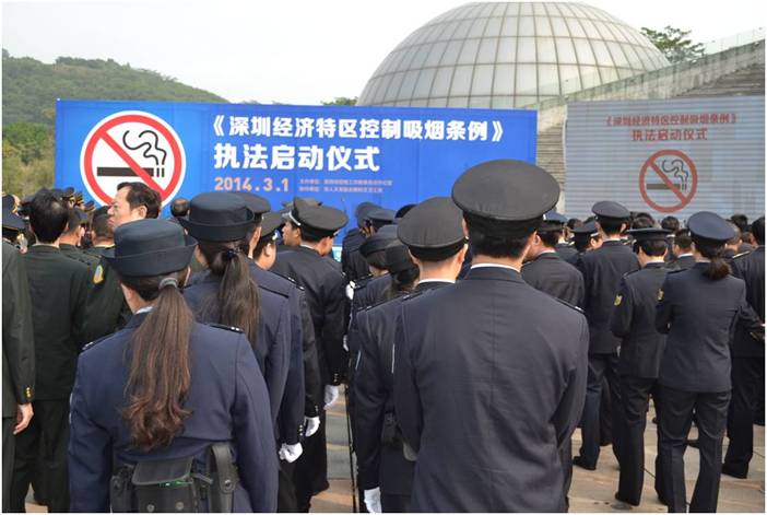 3月1日,新修订的《深圳经济特区控制吸烟条例》全面实施,标志着深圳最严“禁烟令”正式启动。由深圳市控烟工作联席会议办公室主办的控烟执法启动仪式在少年宫广场正式拉开帷幕。地铁是新修订条例规定严禁吸烟的公共场所,负责地铁禁烟执法的市地铁运管办40执法队员参加控烟启动仪式。