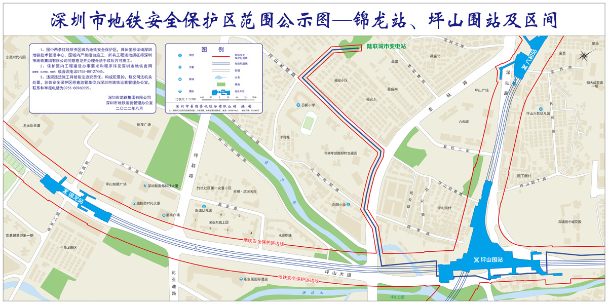 上述线路图仅对各安保区范围内单位提供线路走向参考,发生事故不减免贵司及参建各方的法律、法规和合约责任,详细地铁位置坐标须咨询深圳地铁集团有限公司技术管理中心。