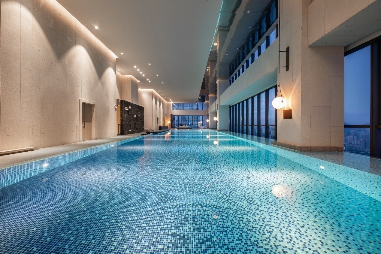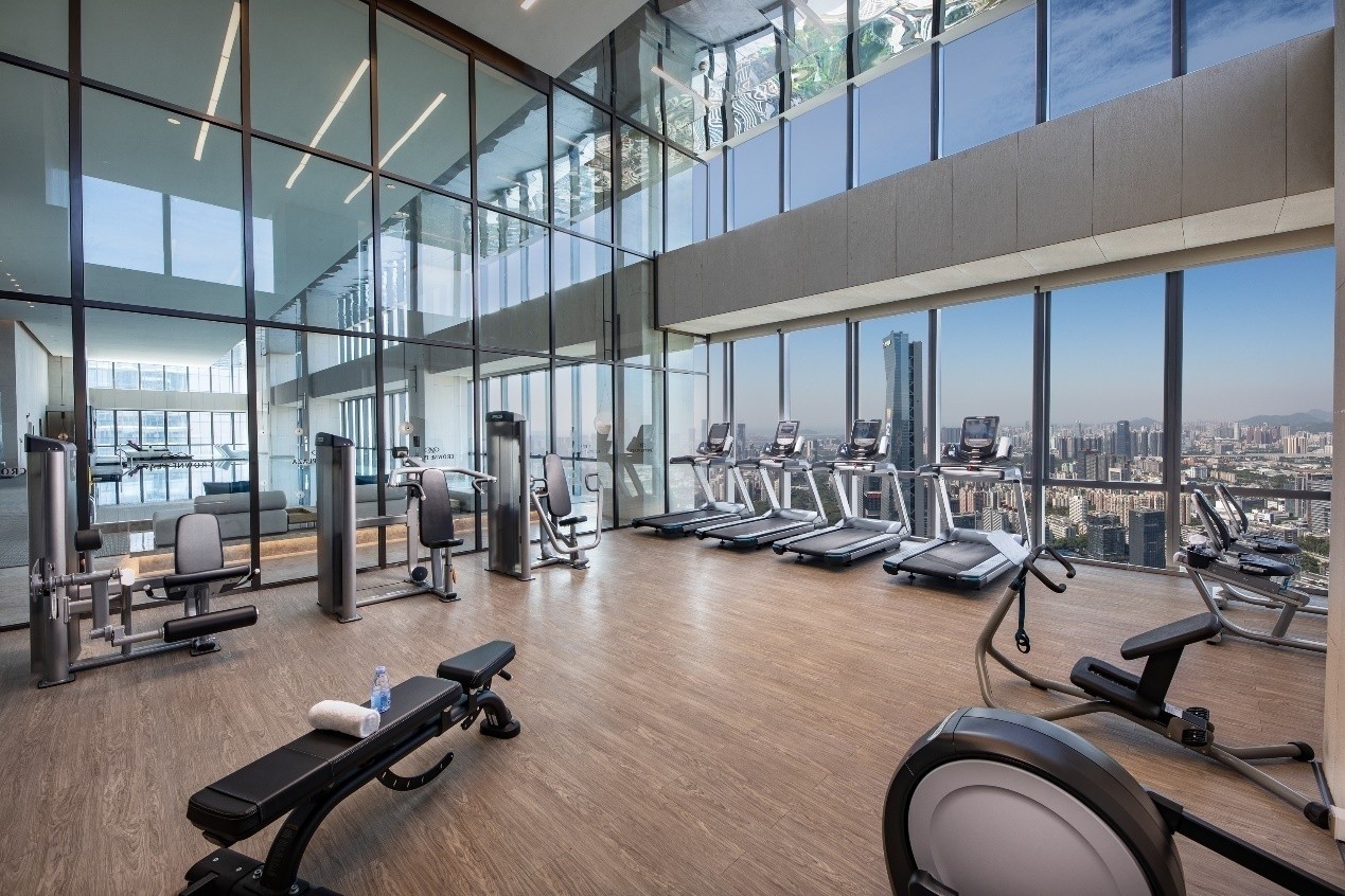 48层顶楼空中泳池及空中瑜伽房,营造一片休闲放松的心灵绿洲。阳光透过落地窗洒在池面,都市空间的流动感与时尚感,打造轻松减压的空间意境,畅游舒展期间定会带给您与众不同的体验。健身中心配备专业的健身器材,城市美景尽收眼底。