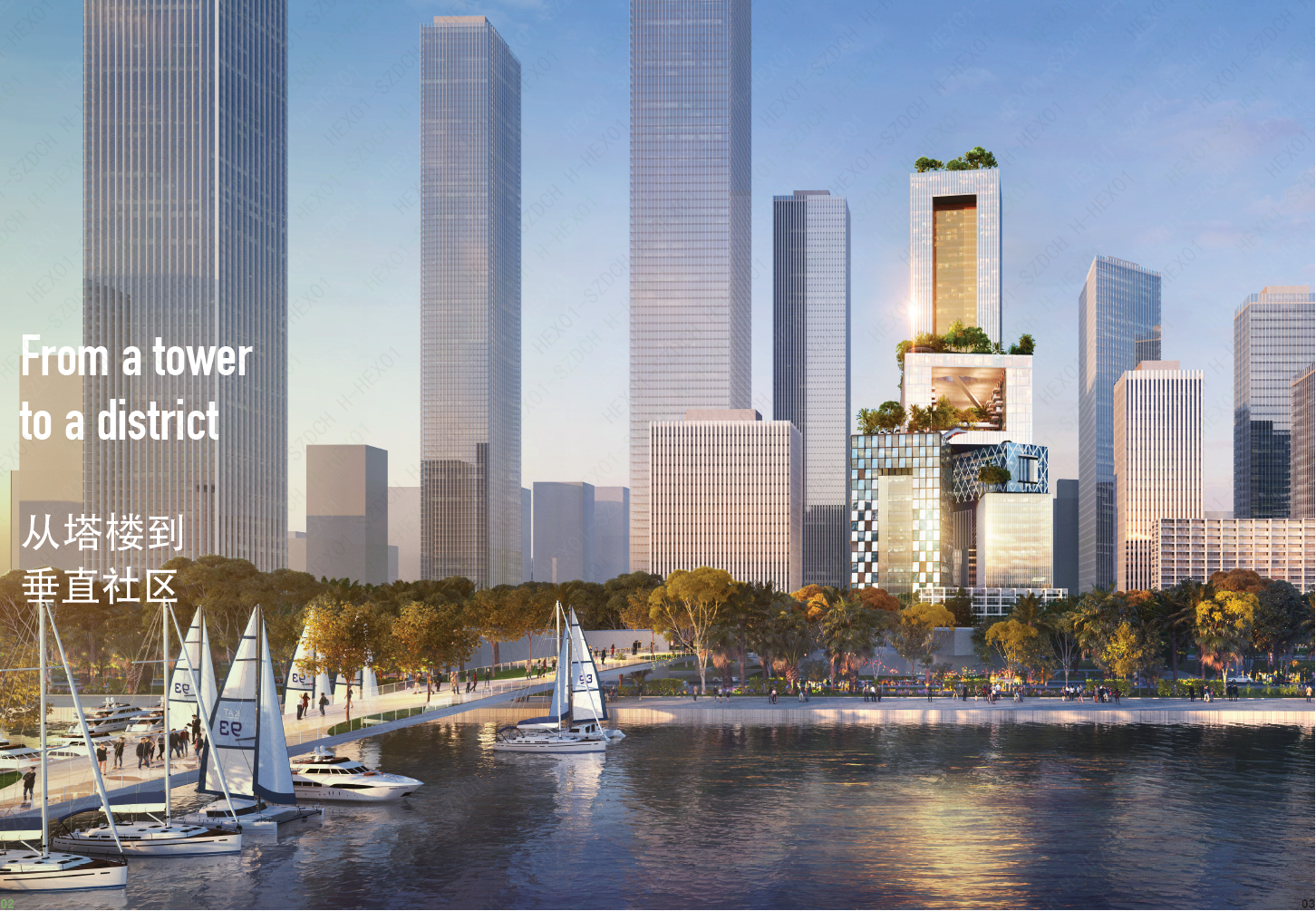这个未来摩天大楼的设计方案满足了项目计划中对可持续性的要求。层叠塔楼形成了多个绿化的屋顶,塔楼底部的绿色公园还响应了深圳市的“海绵城市”的倡导,它鼓励多孔化景观,不仅能预防洪水,还能减少城市对生态系统的影响。