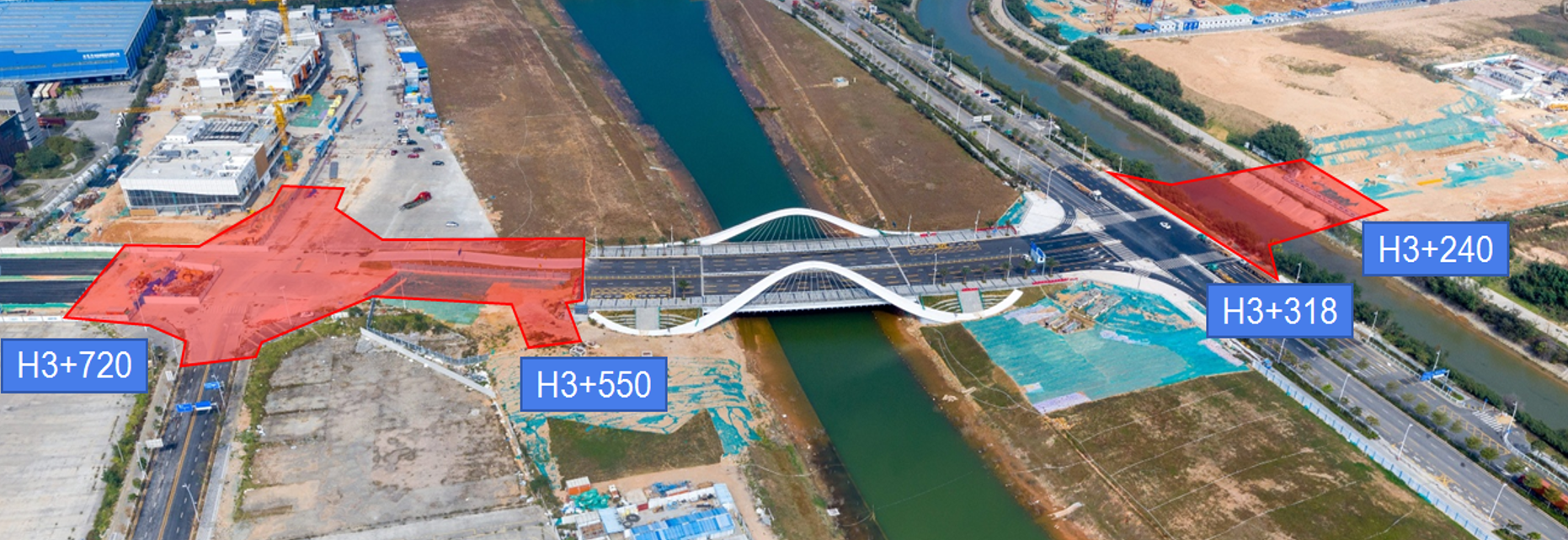 听海大道(桂湾四路以北段)和听海大道地下空间(前海湾段)工程包括双界河路至桃园路段市政道路工程及相关地下空间工程,工程概算投资5.9亿。市政道路工程规划为城市主干路,双向6车道,道路红线宽50m,设计范围不包含双界河路路口,包括桂湾站桃园路路口范围,全长约950m;地下空间工程包括前海湾站段范围,进行地下一层开发,以步行交通空间为主,配以商业零售店面,开发面积约为28671平方米,其中商业面积约21848平方米。基坑分为两部分:地下空间和共同沟基坑,地下空间基坑深度4.95~11.0m,共同沟基坑深度4.44~17.42m。