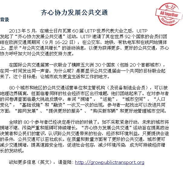 齐心协力发展公共交通