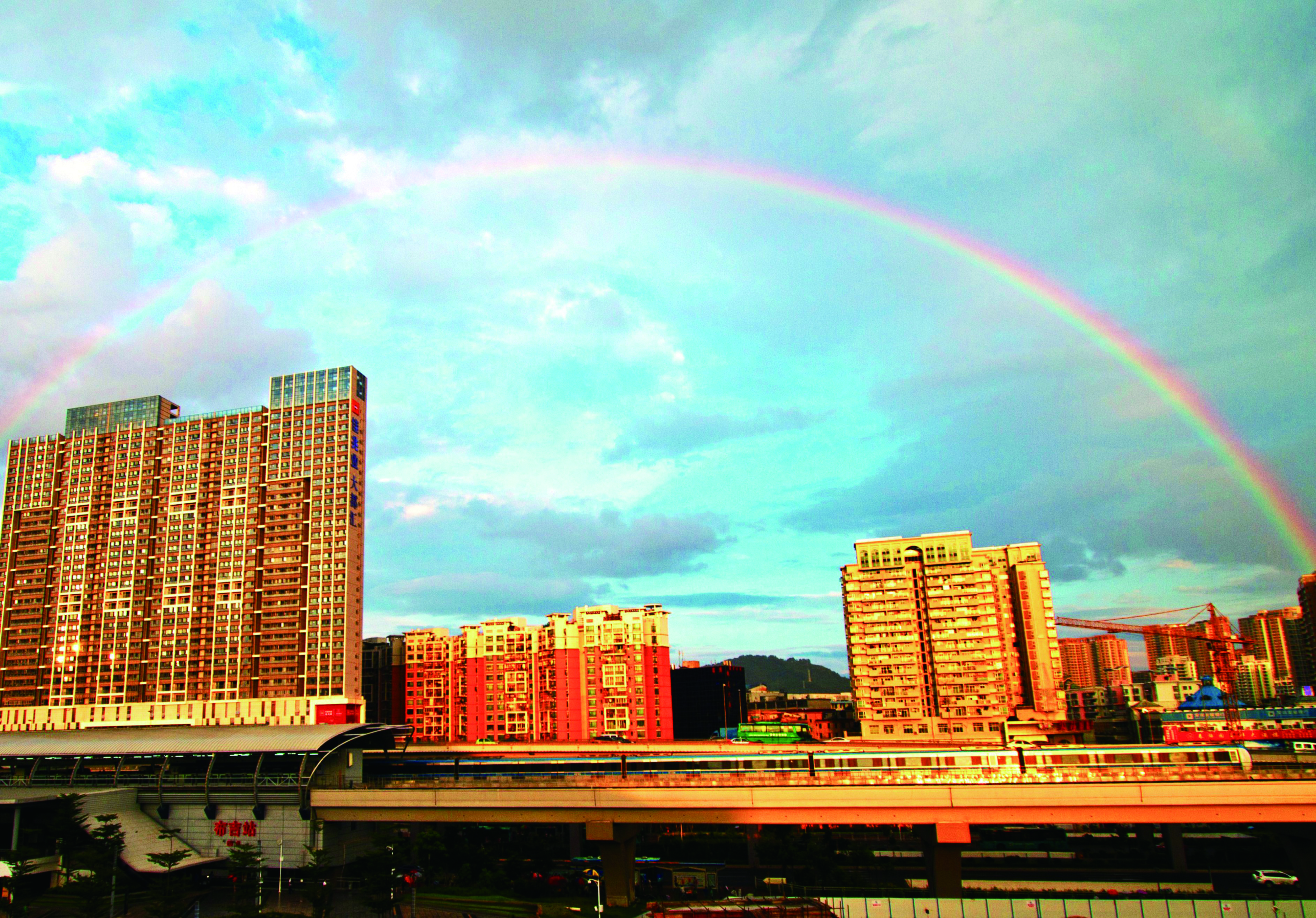 深圳地铁列车在城市穿行