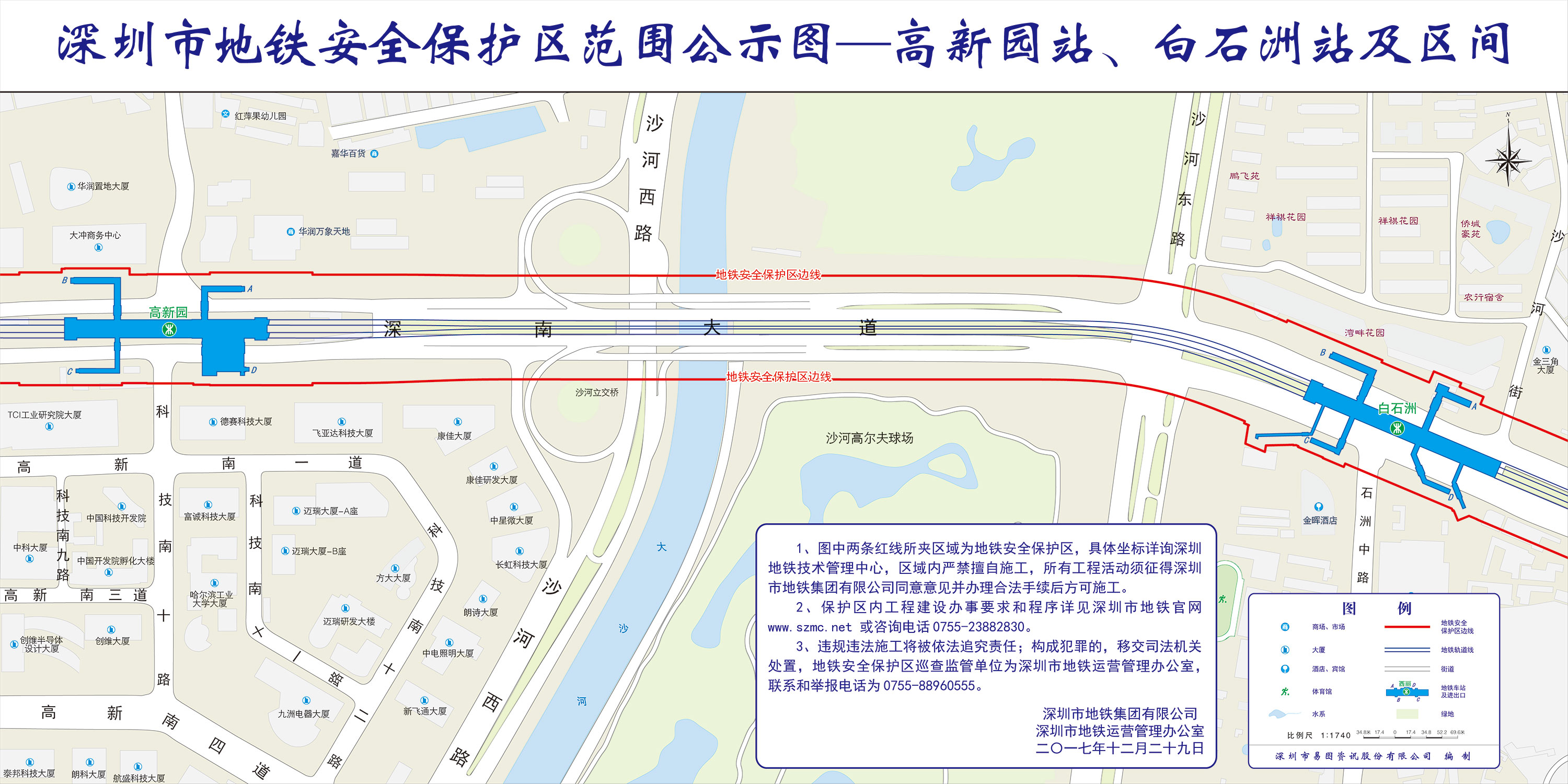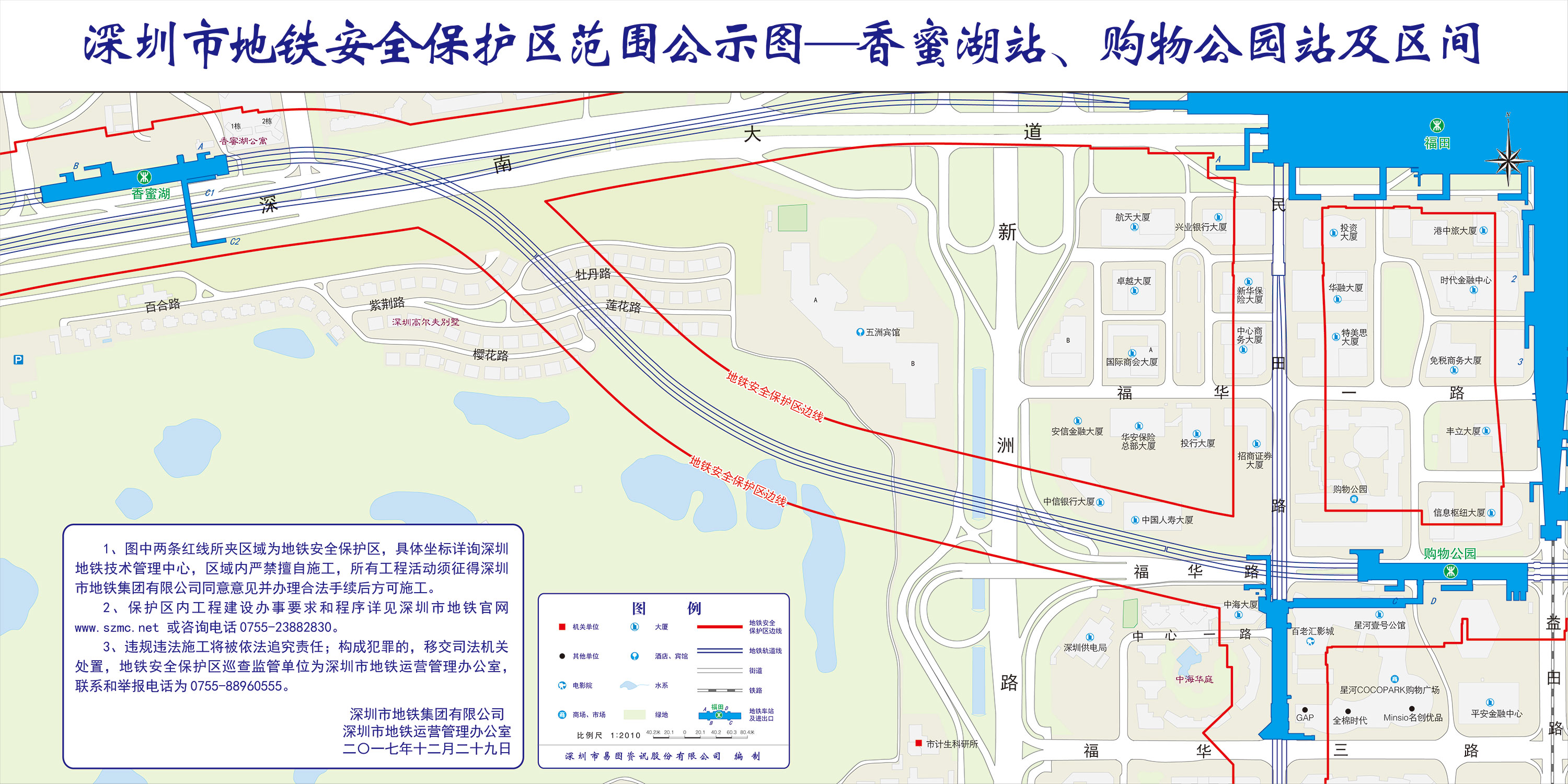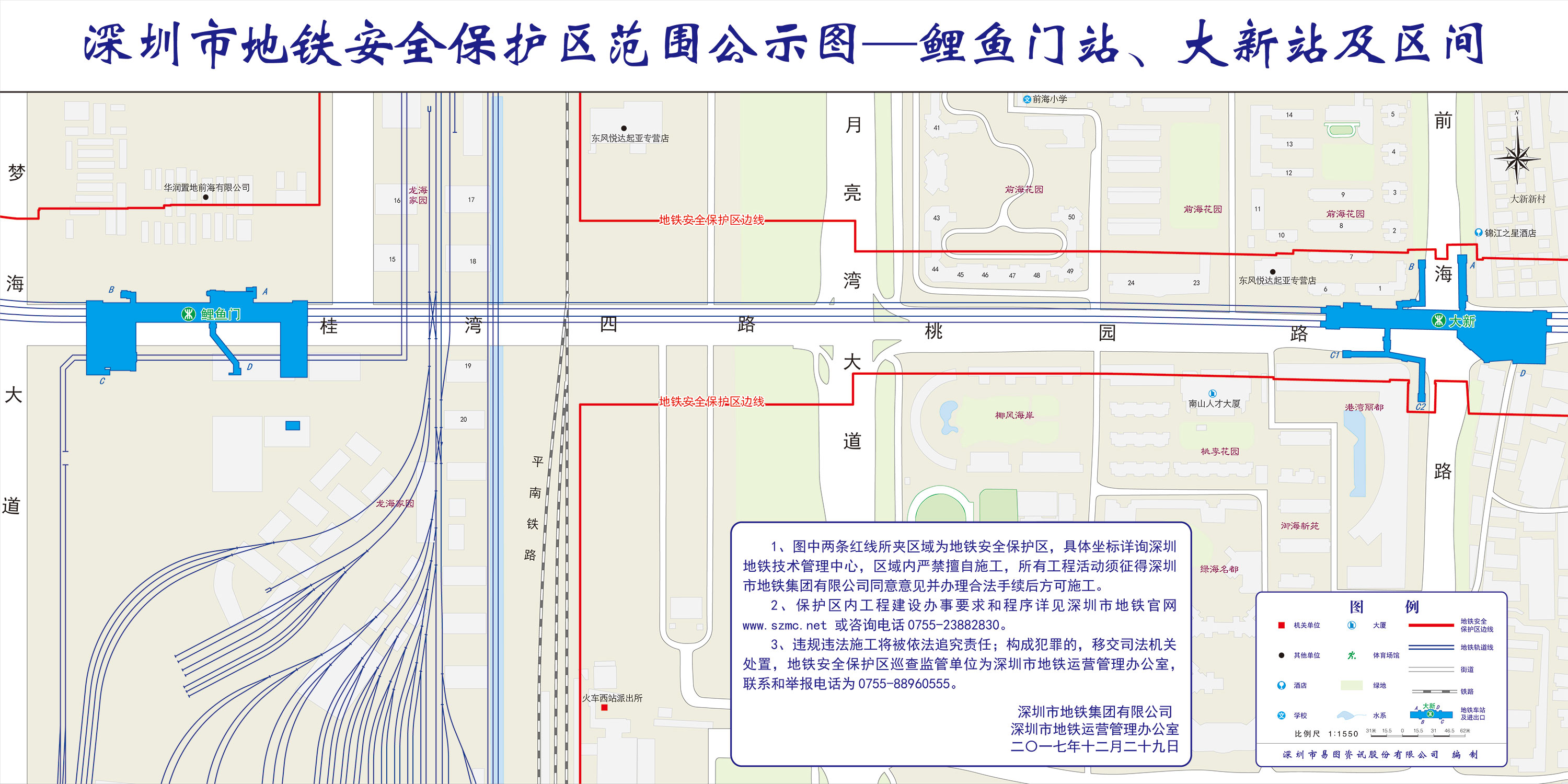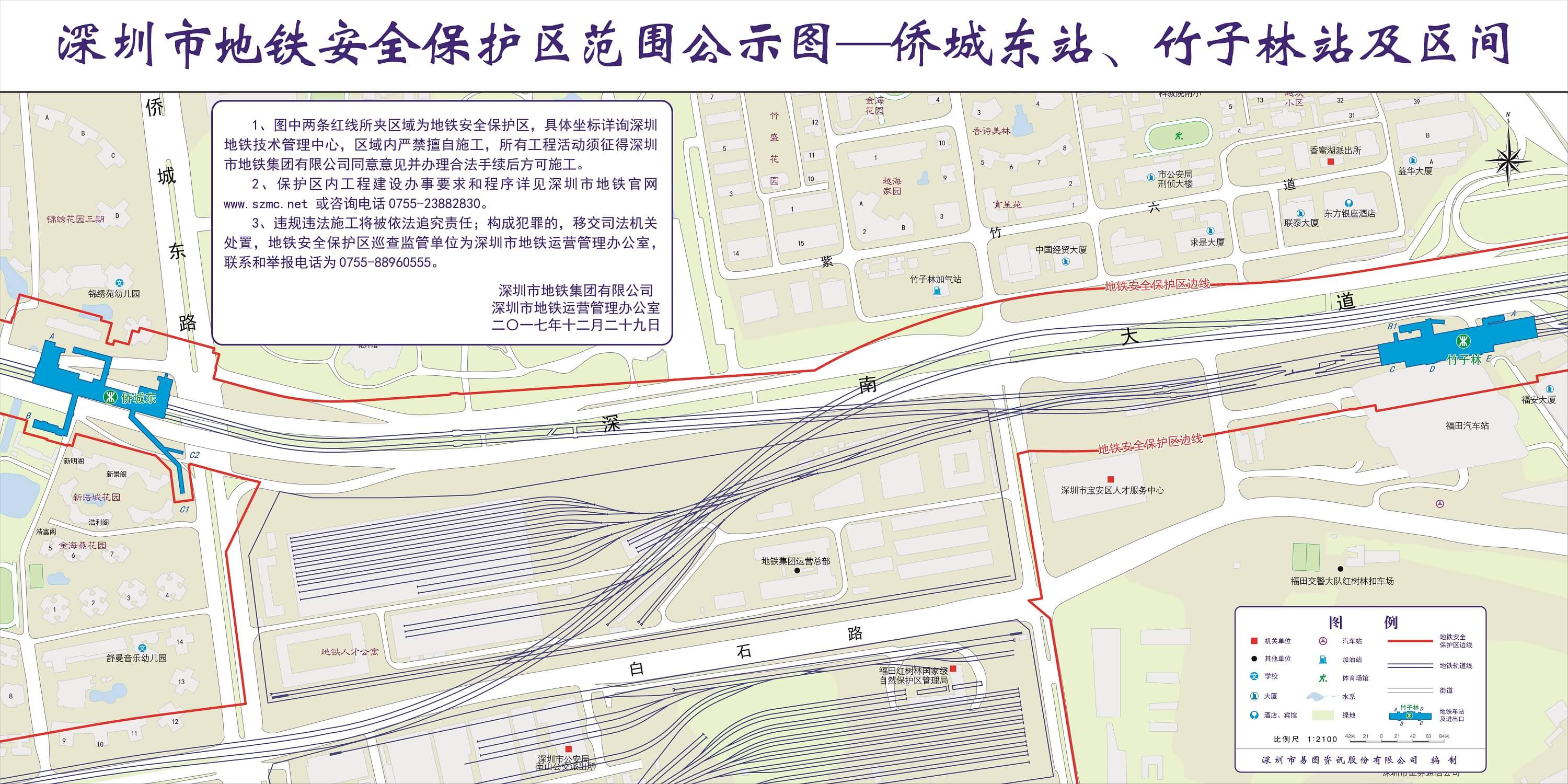 上述线路图仅对各安保区范围内单位提供线路走向参考,发生事故不减免贵司及参建各方的法律、法规和合约责任,详细地铁位置坐标须咨询深圳地铁集团有限公司技术管理中心。