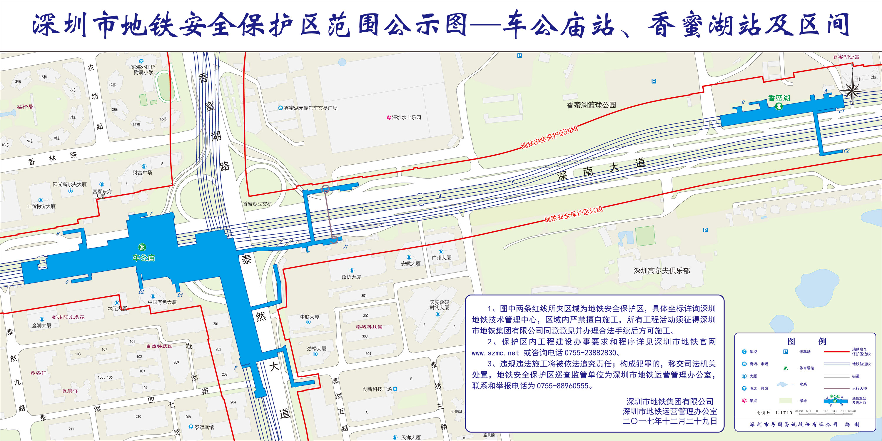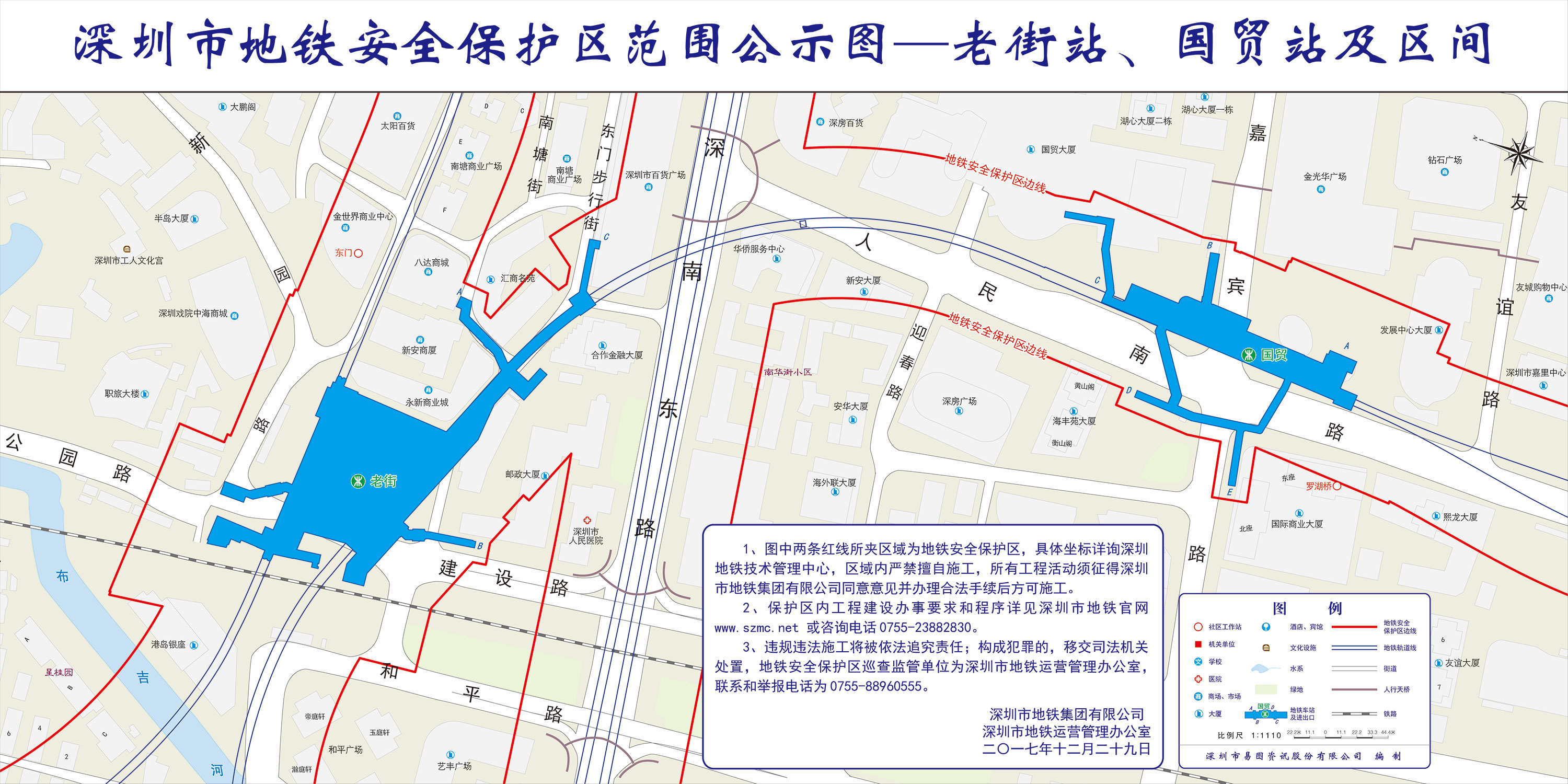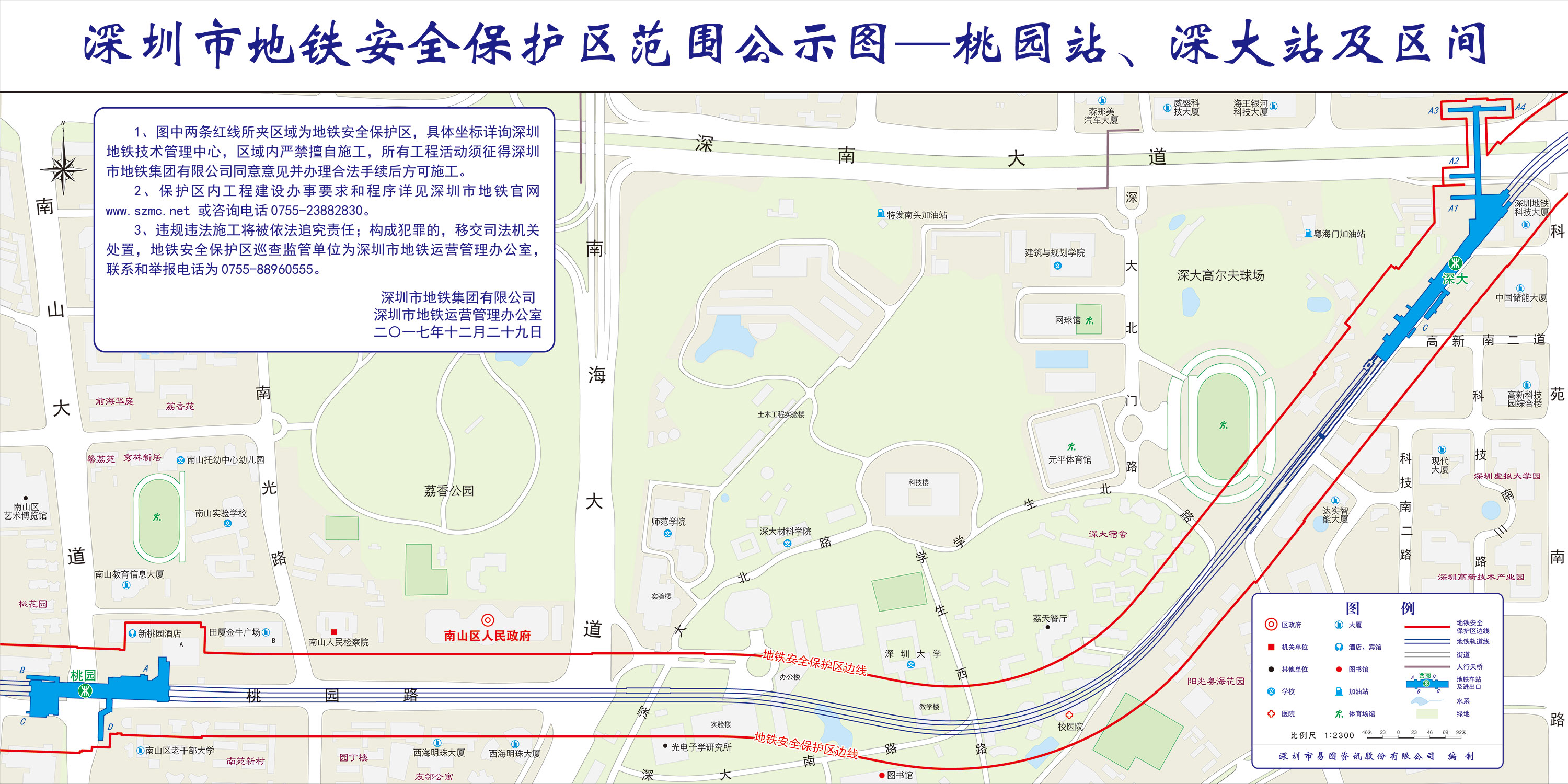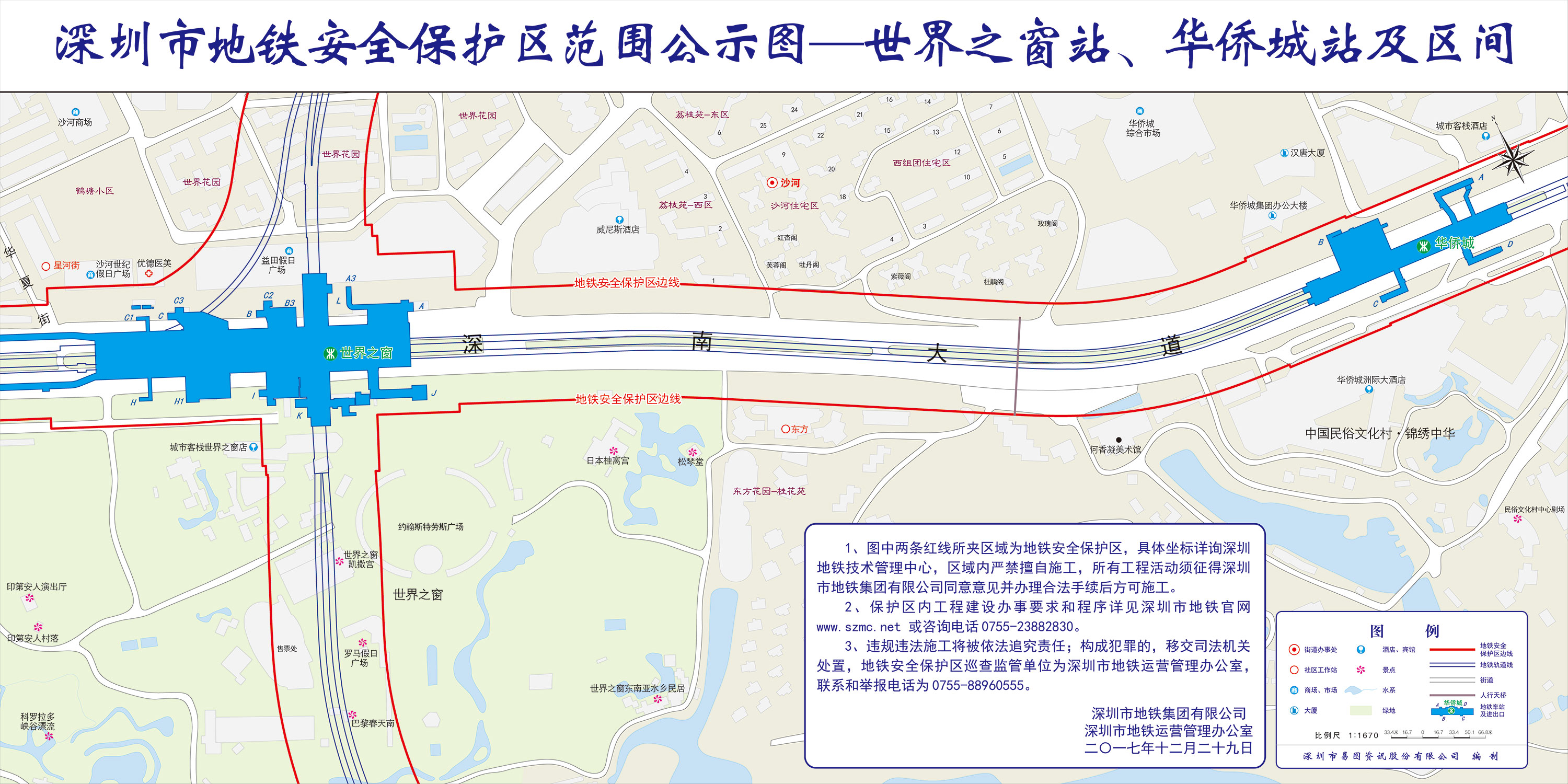 上述线路图仅对各安保区范围内单位提供线路走向参考,发生事故不减免贵司及参建各方的法律、法规和合约责任,详细地铁位置坐标须咨询深圳地铁集团有限公司技术管理中心。