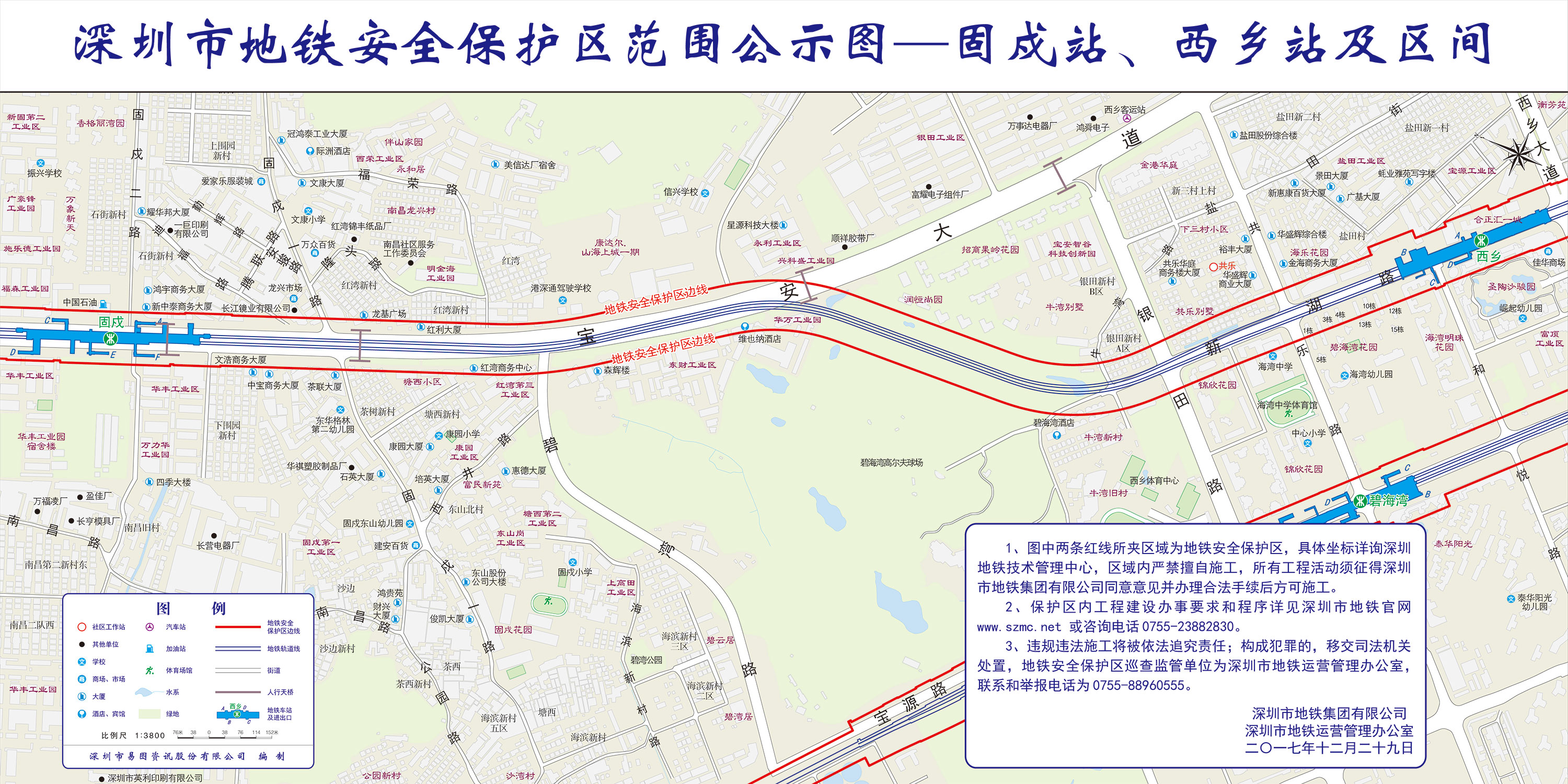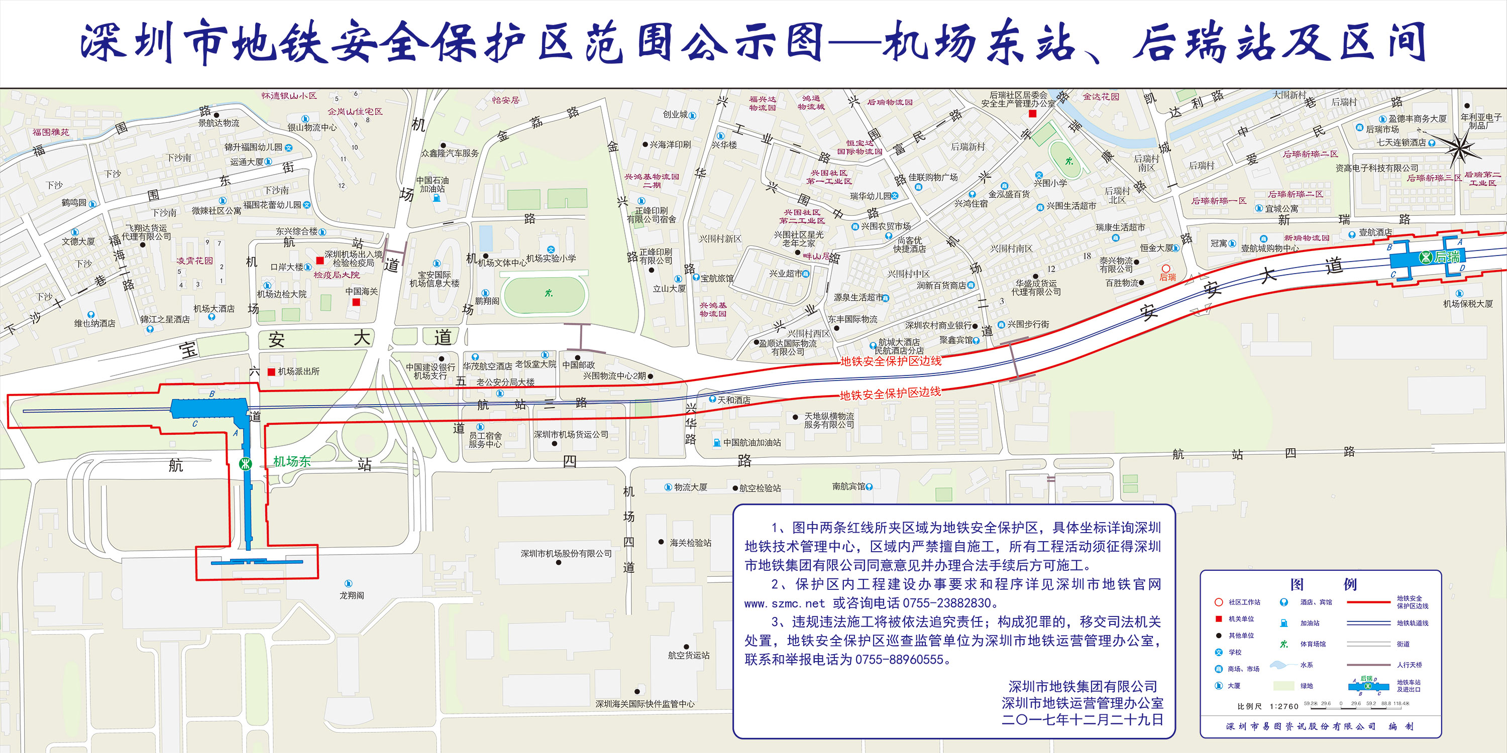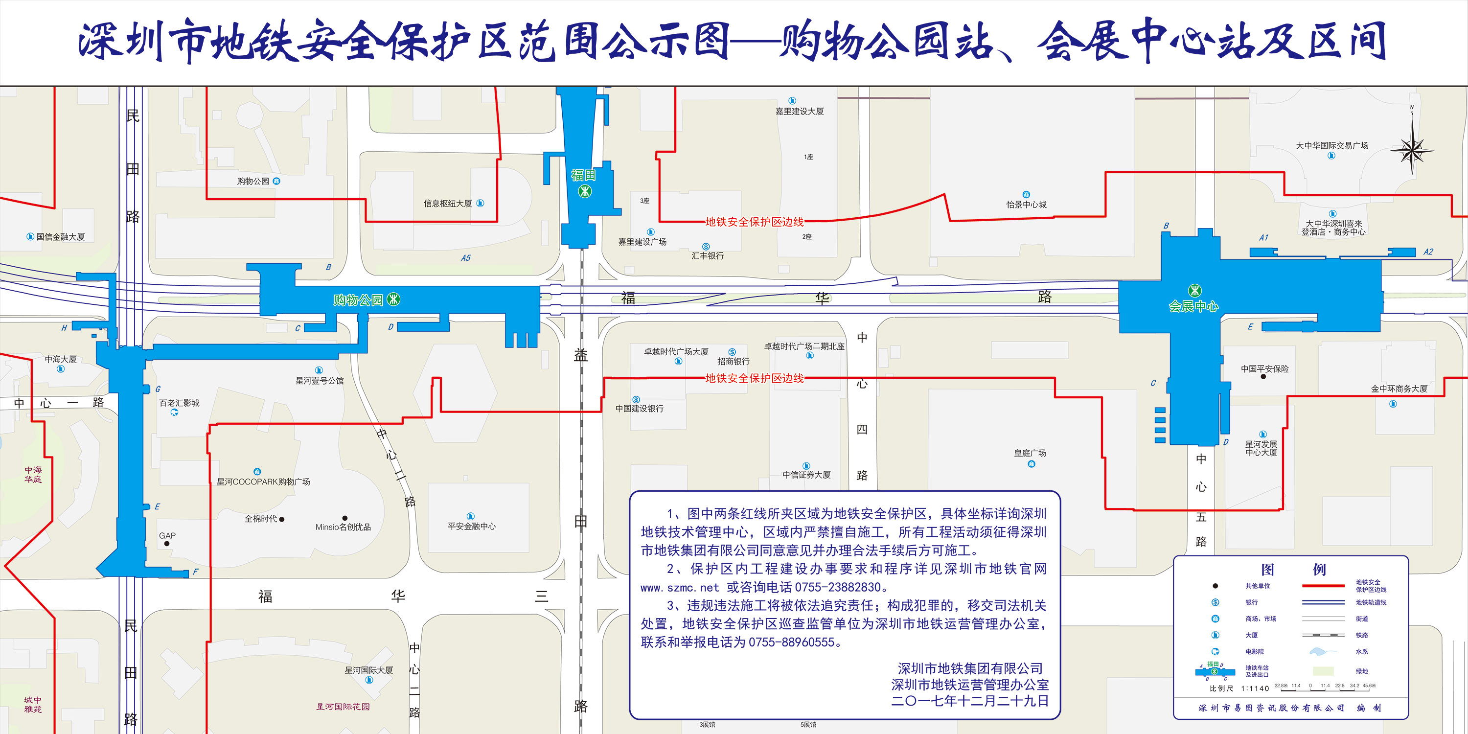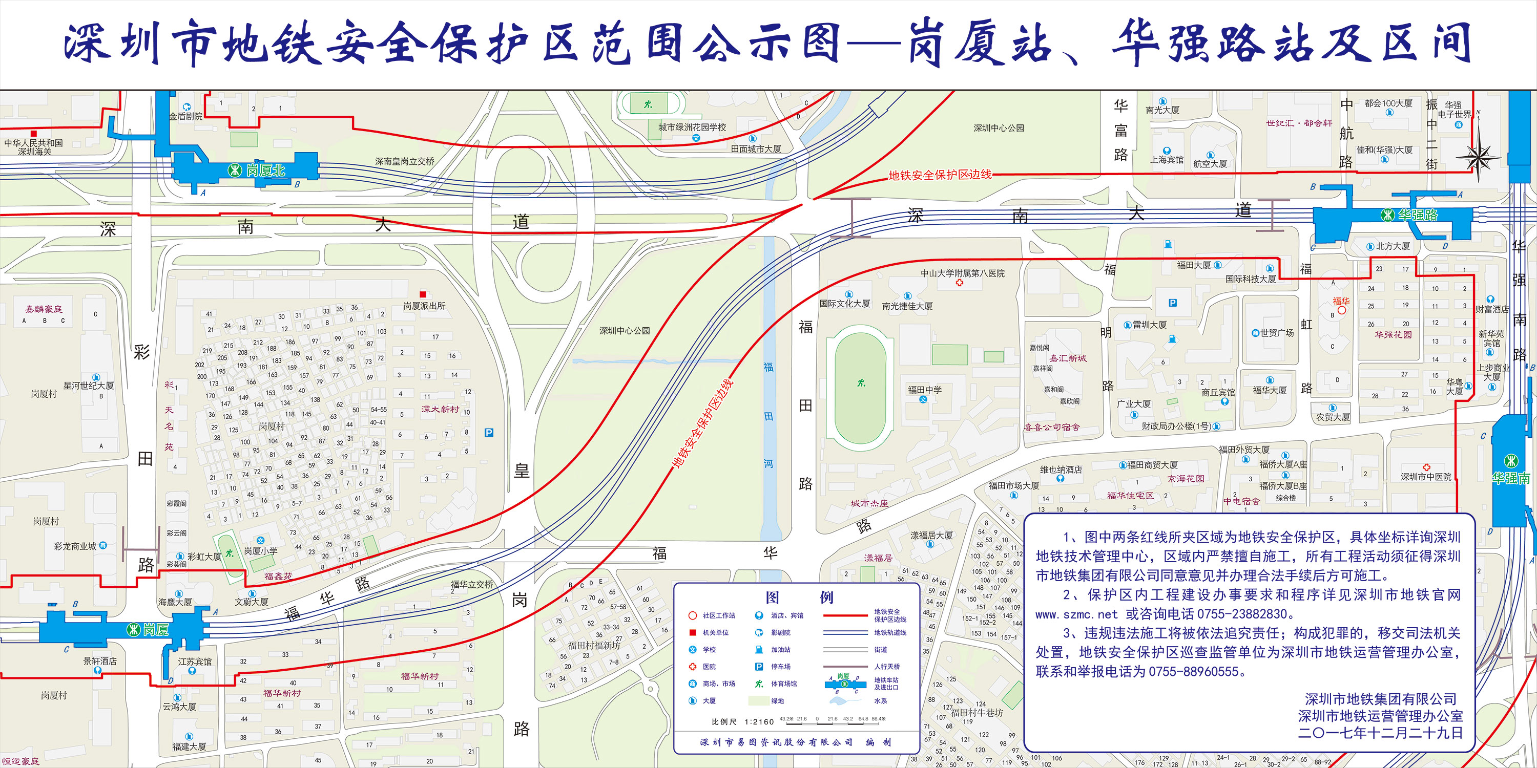 上述线路图仅对各安保区范围内单位提供线路走向参考,发生事故不减免贵司及参建各方的法律、法规和合约责任,详细地铁位置坐标须咨询深圳地铁集团有限公司技术管理中心。