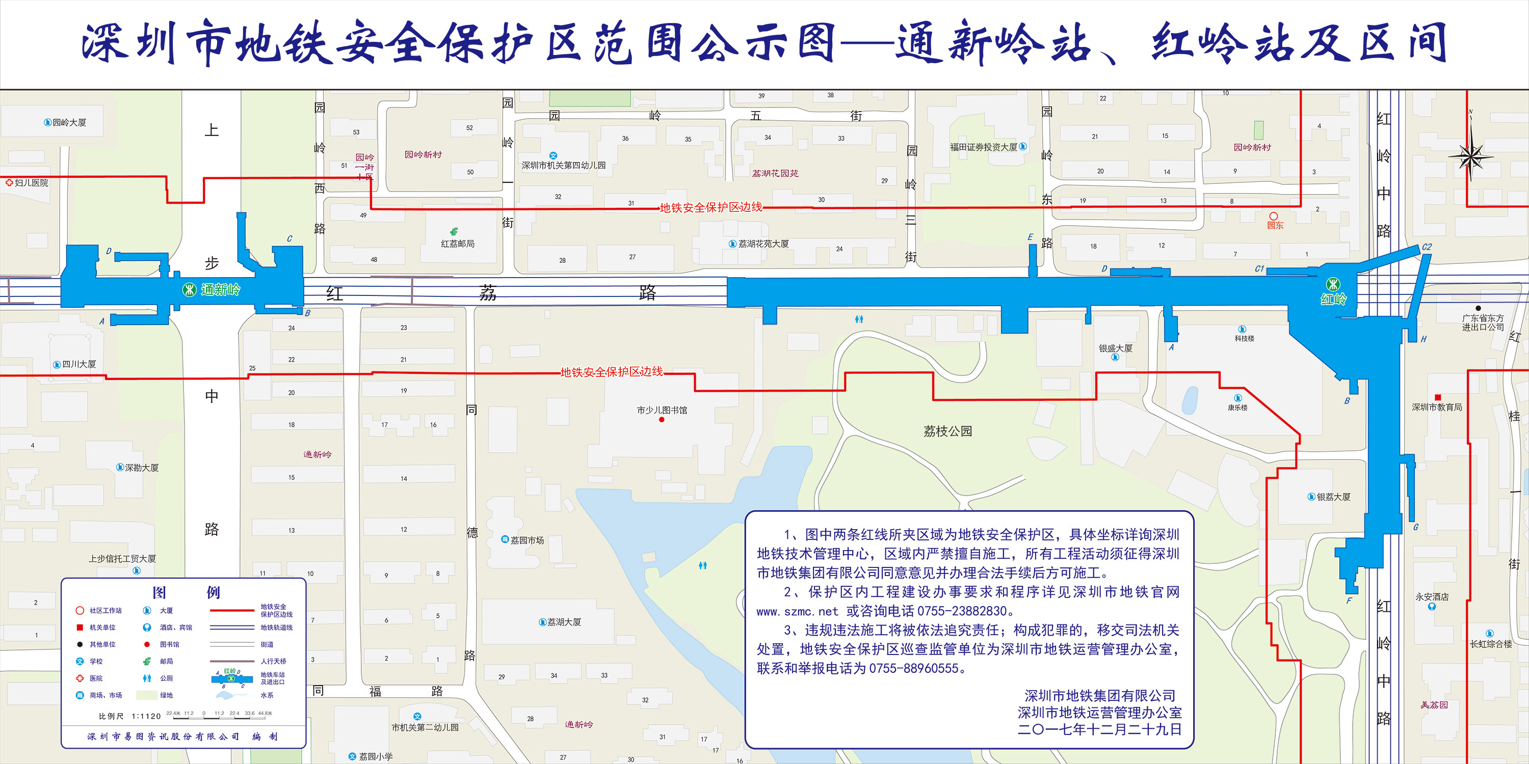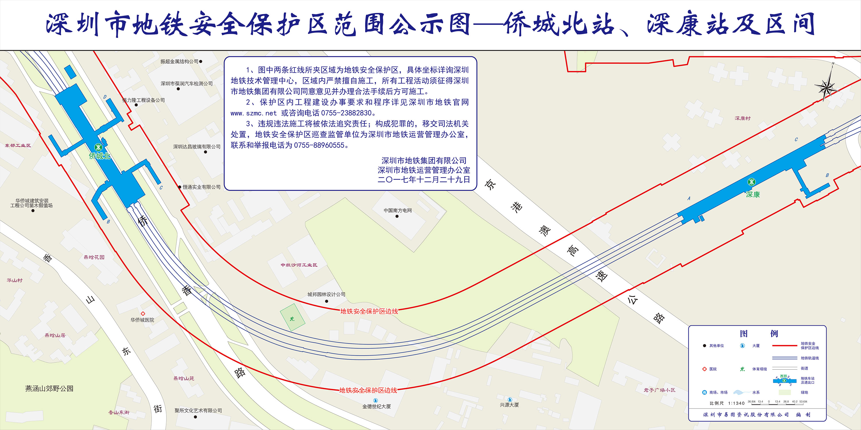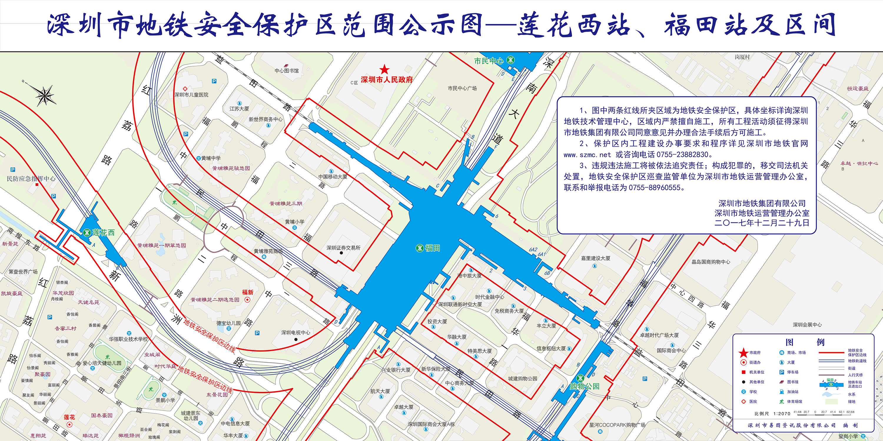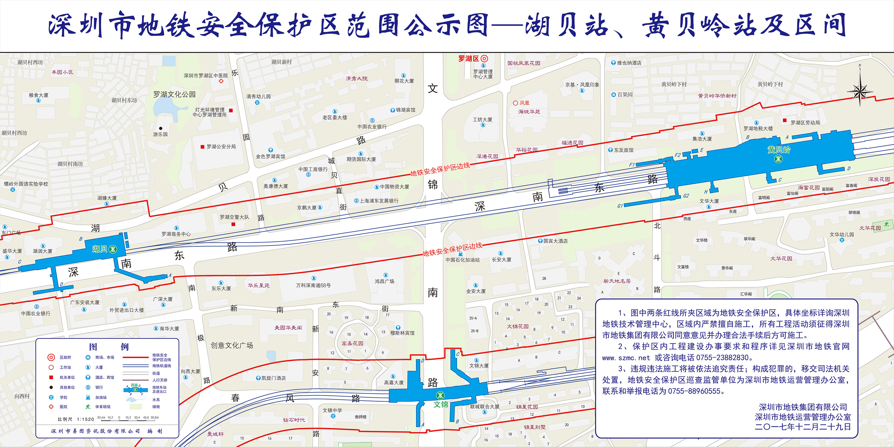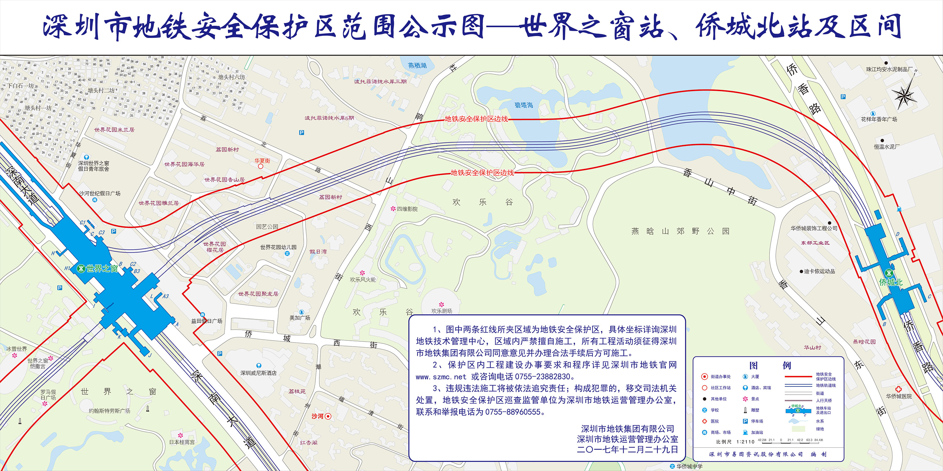 上述线路图仅对各安保区范围内单位提供线路走向参考,发生事故不减免贵司及参建各方的法律、法规和合约责任,详细地铁位置坐标须咨询深圳地铁集团有限公司技术管理中心。