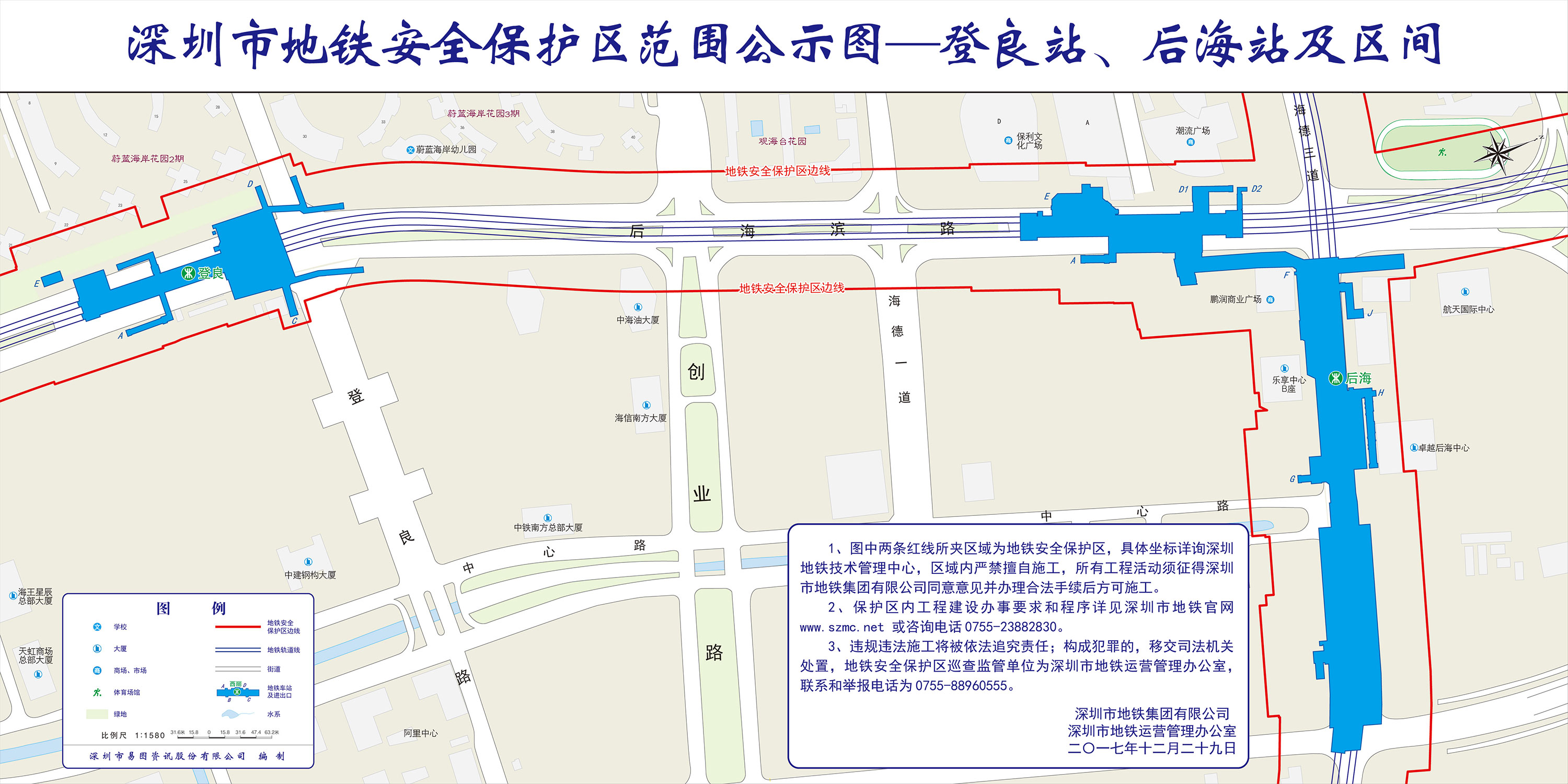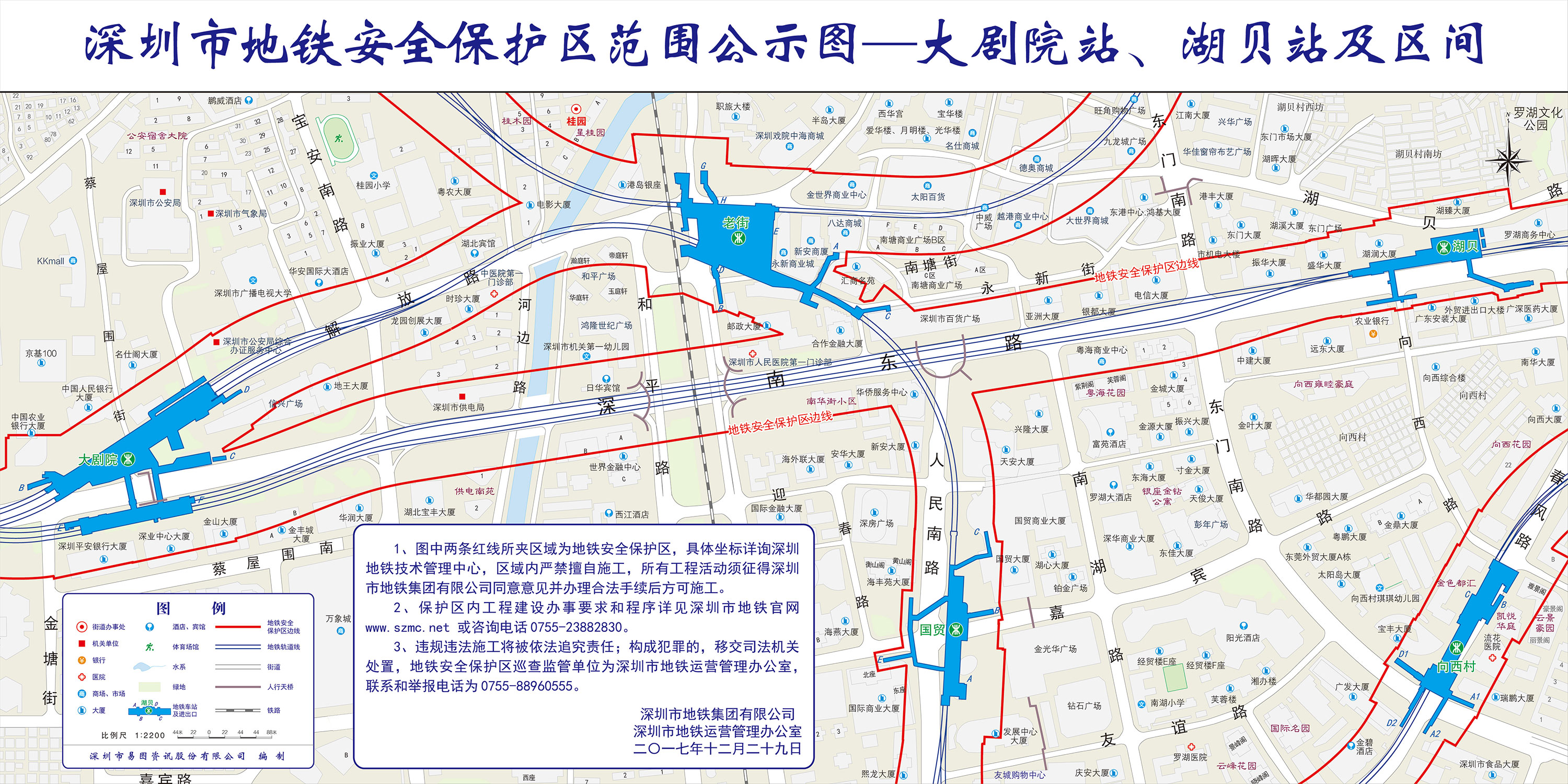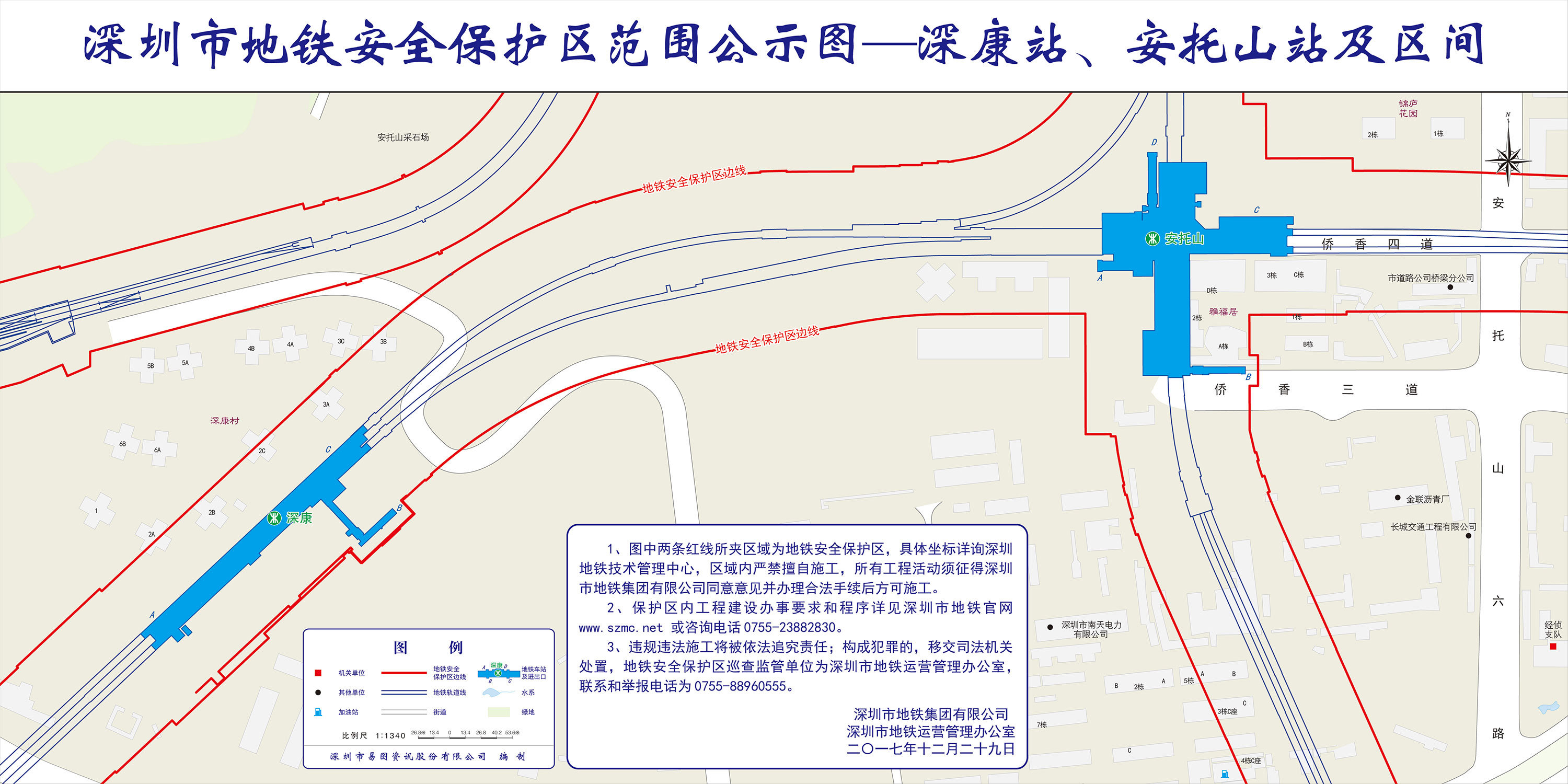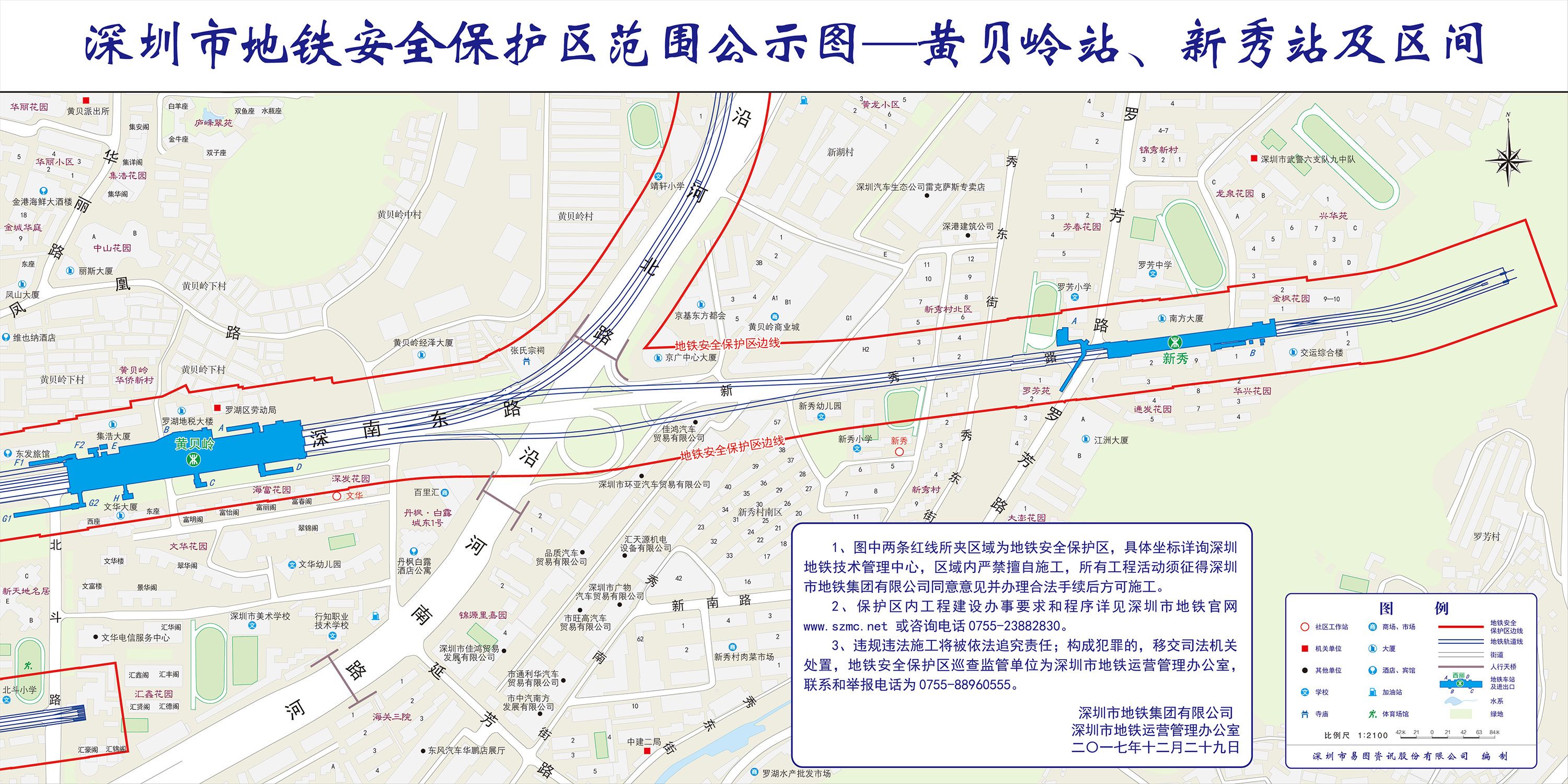 上述线路图仅对各安保区范围内单位提供线路走向参考,发生事故不减免贵司及参建各方的法律、法规和合约责任,详细地铁位置坐标须咨询深圳地铁集团有限公司技术管理中心。