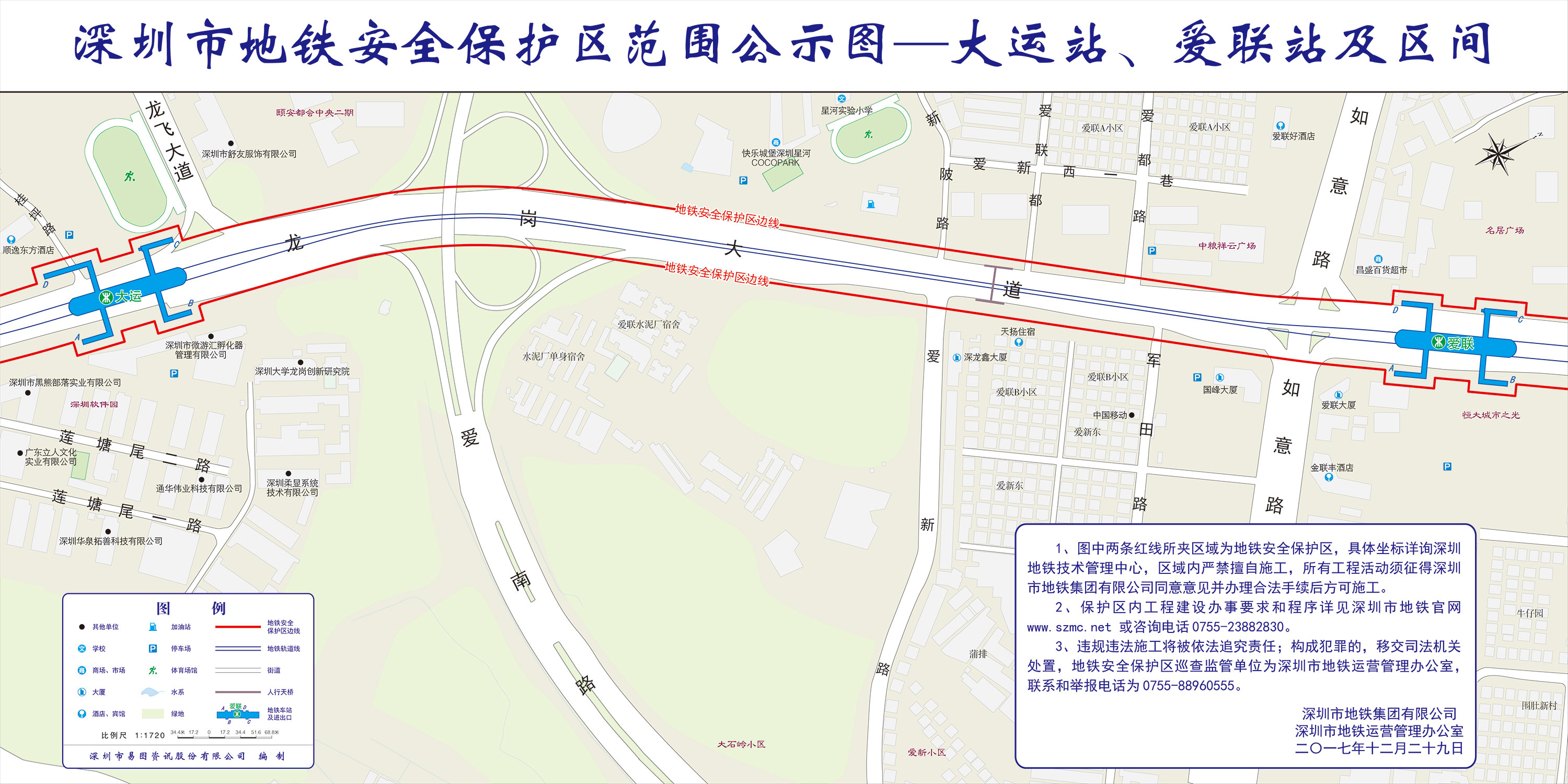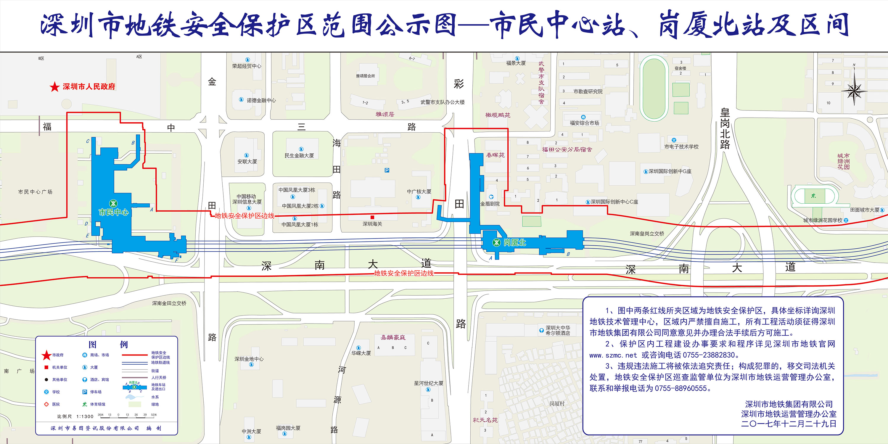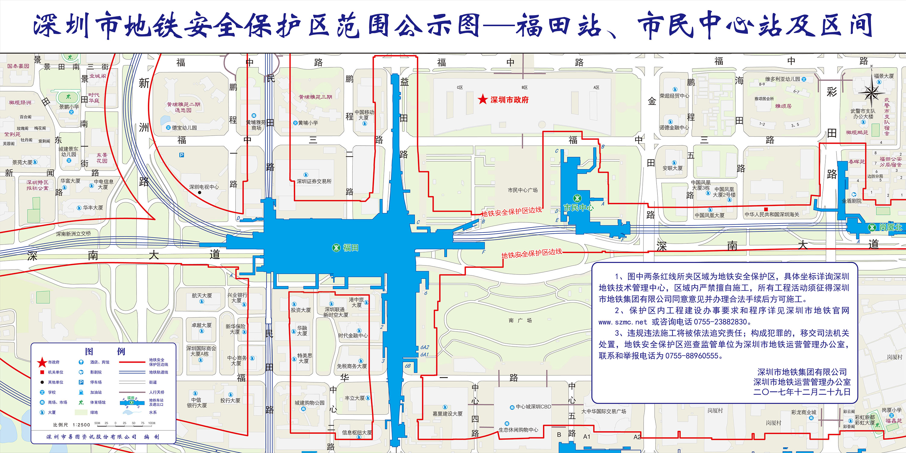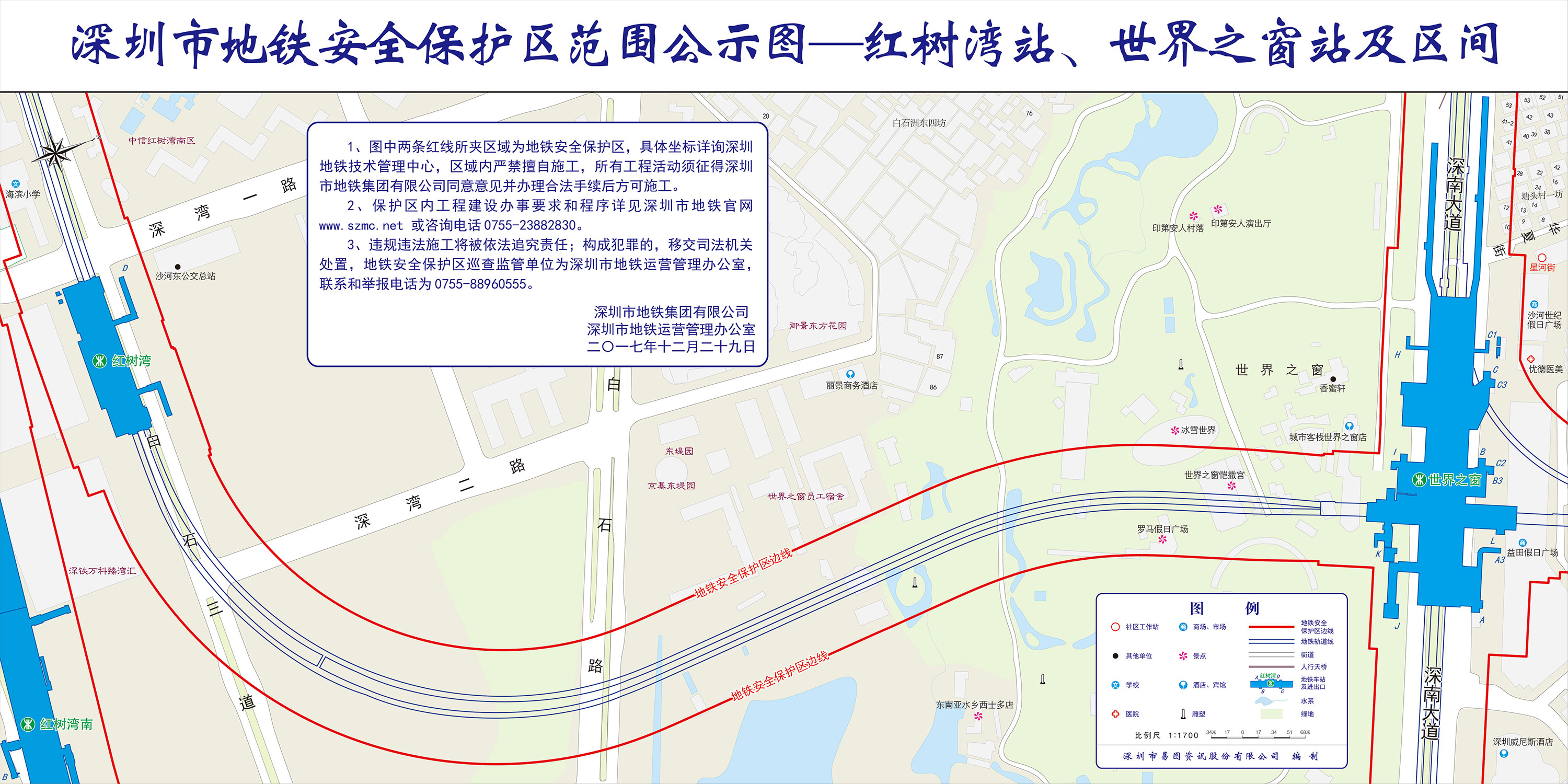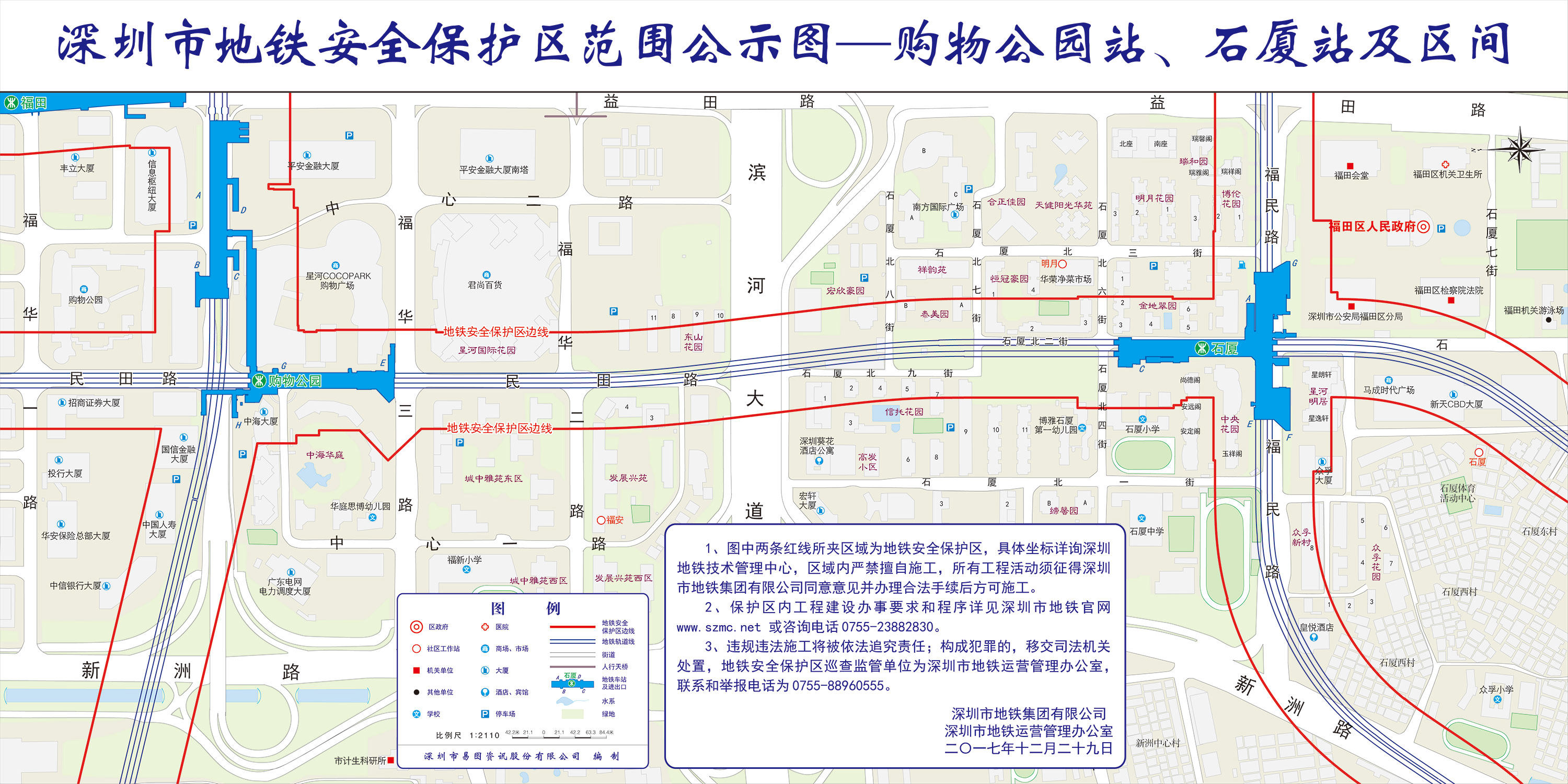 上述线路图仅对各安保区范围内单位提供线路走向参考,发生事故不减免贵司及参建各方的法律、法规和合约责任,详细地铁位置坐标须咨询深圳地铁集团有限公司技术管理中心。