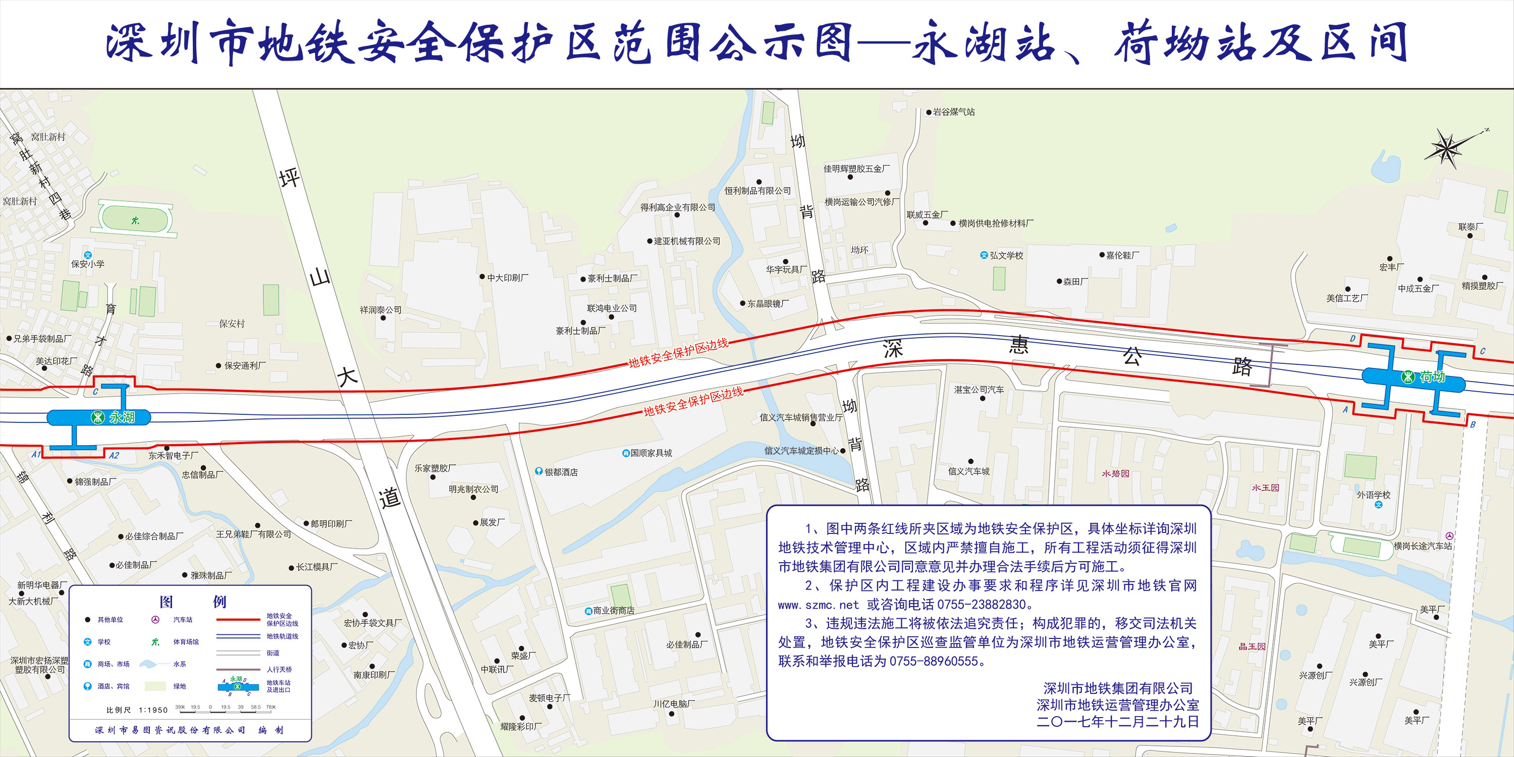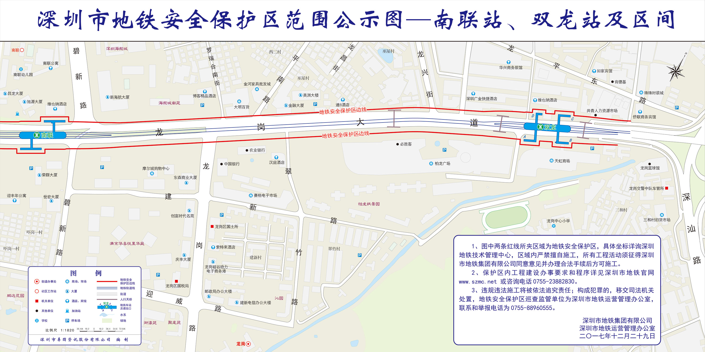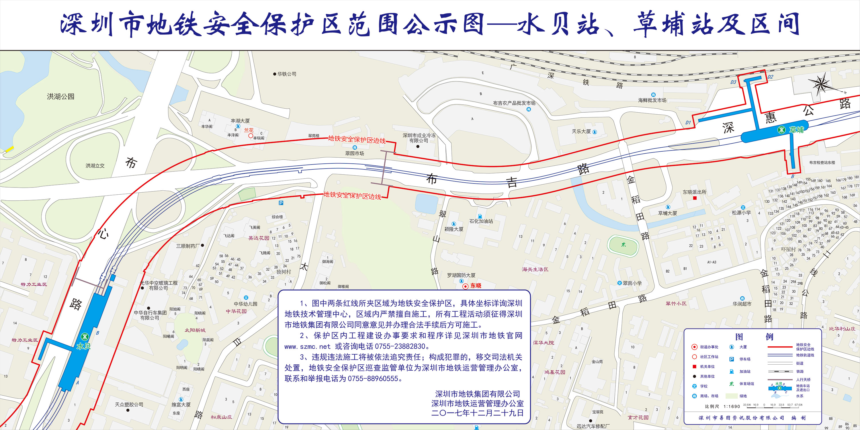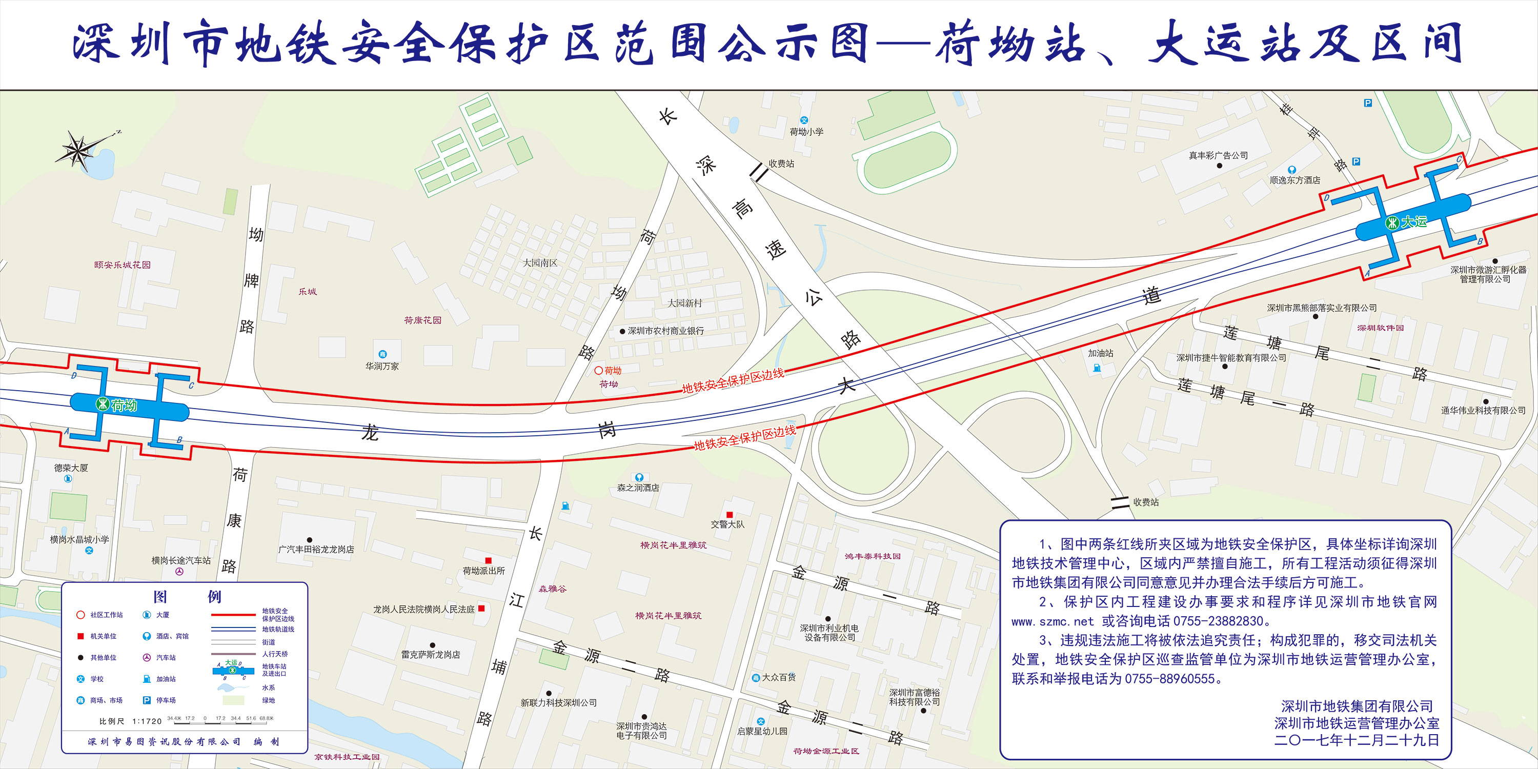 上述线路图仅对各安保区范围内单位提供线路走向参考,发生事故不减免贵司及参建各方的法律、法规和合约责任,详细地铁位置坐标须咨询深圳地铁集团有限公司技术管理中心。