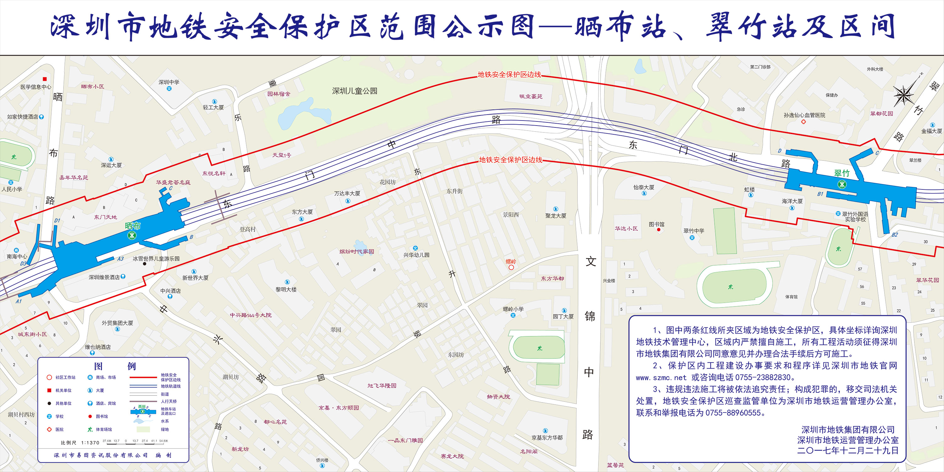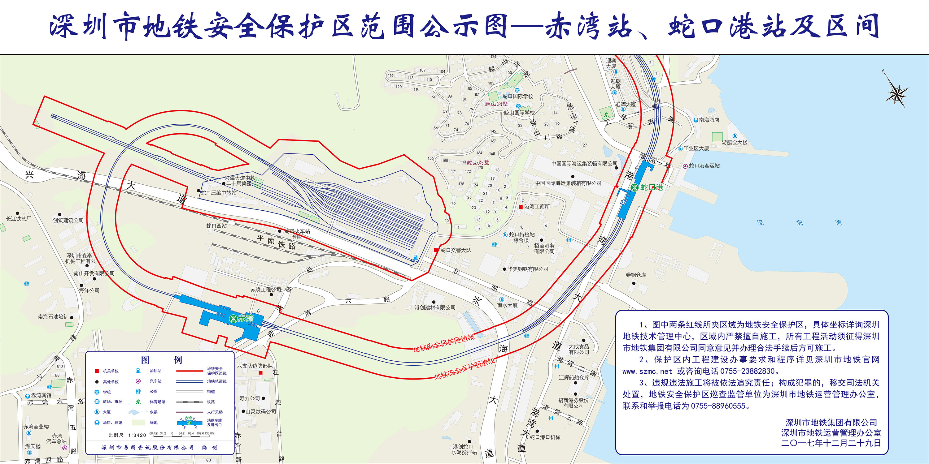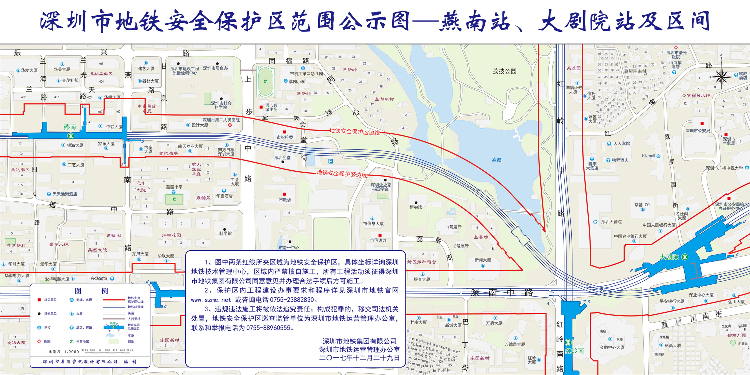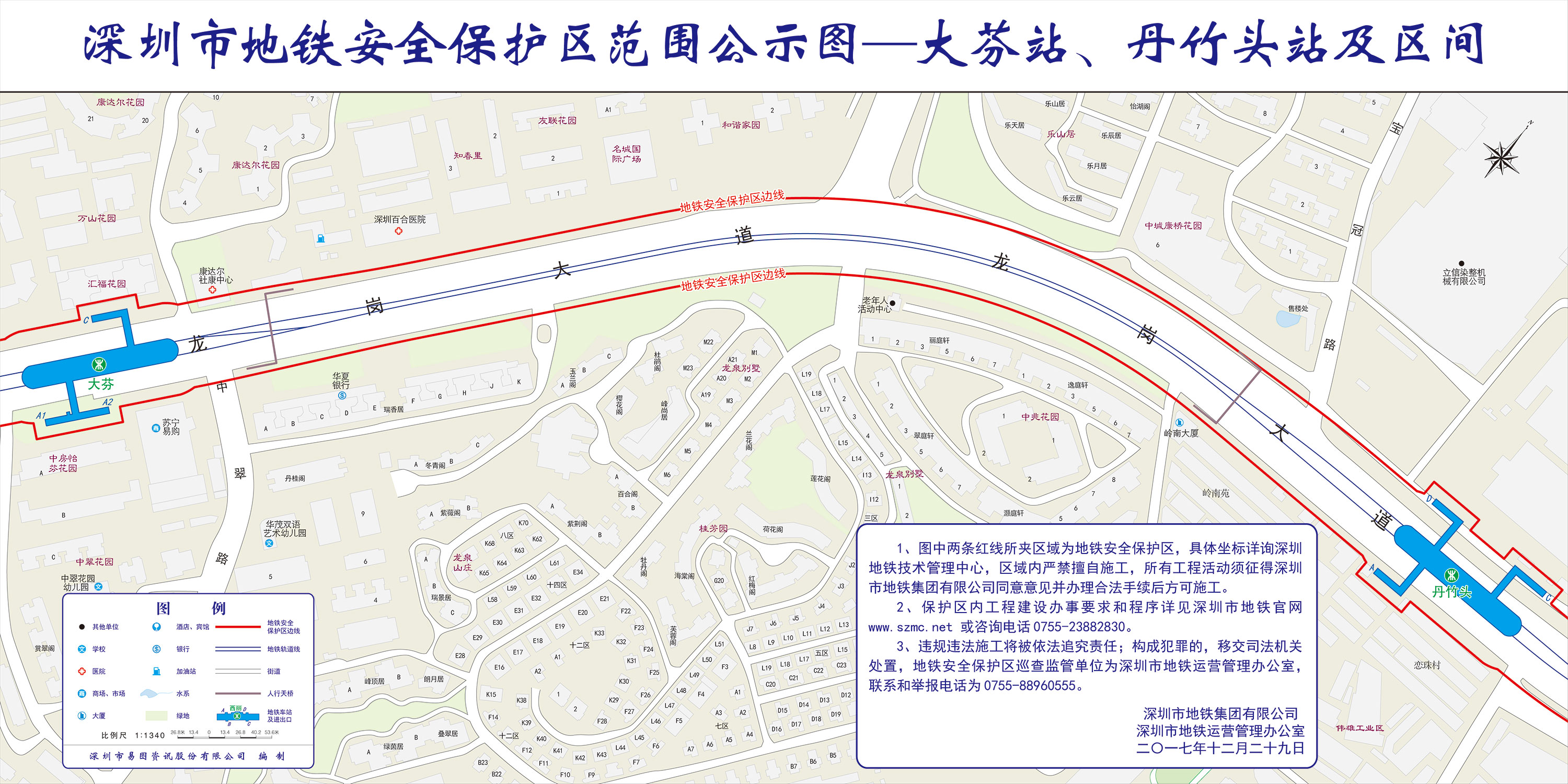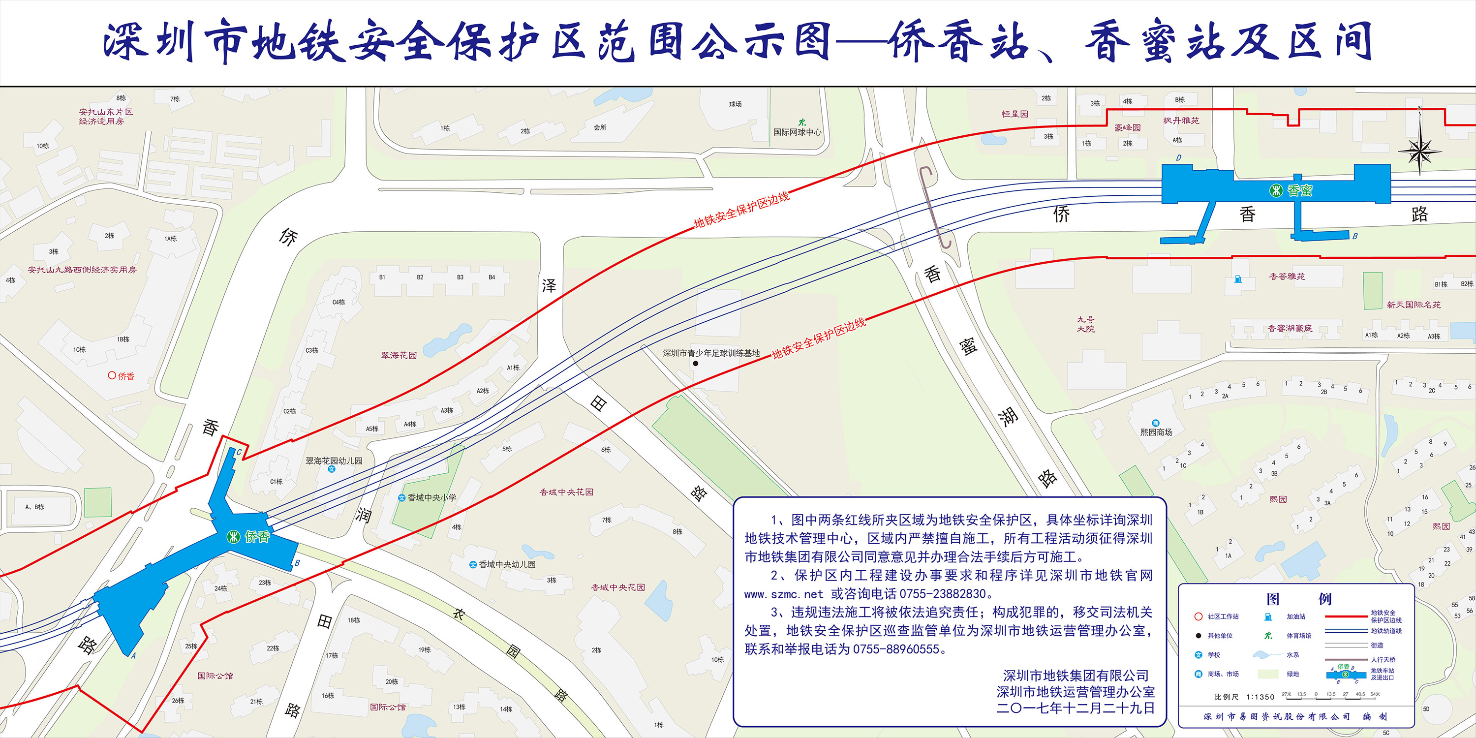 上述线路图仅对各安保区范围内单位提供线路走向参考,发生事故不减免贵司及参建各方的法律、法规和合约责任,详细地铁位置坐标须咨询深圳地铁集团有限公司技术管理中心。