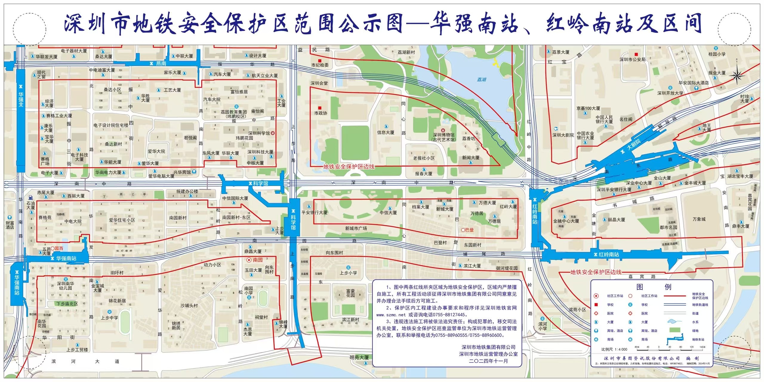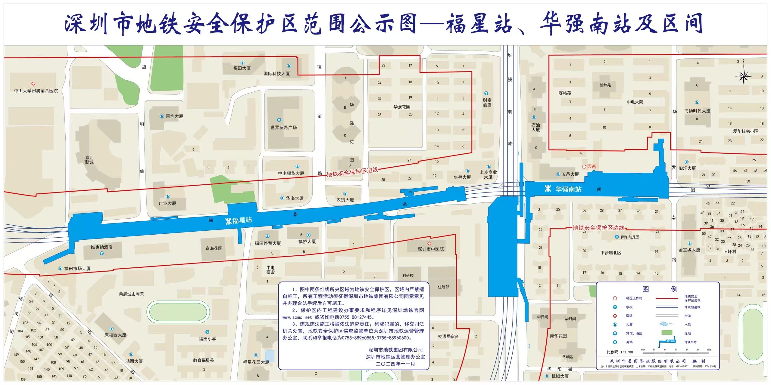上述线路图仅对各安保区范围内单位提供线路走向参考,发生事故不减免贵司及参建各方的法律、法规和合约责任,详细地铁位置坐标须咨询深圳地铁集团有限公司技术管理中心。