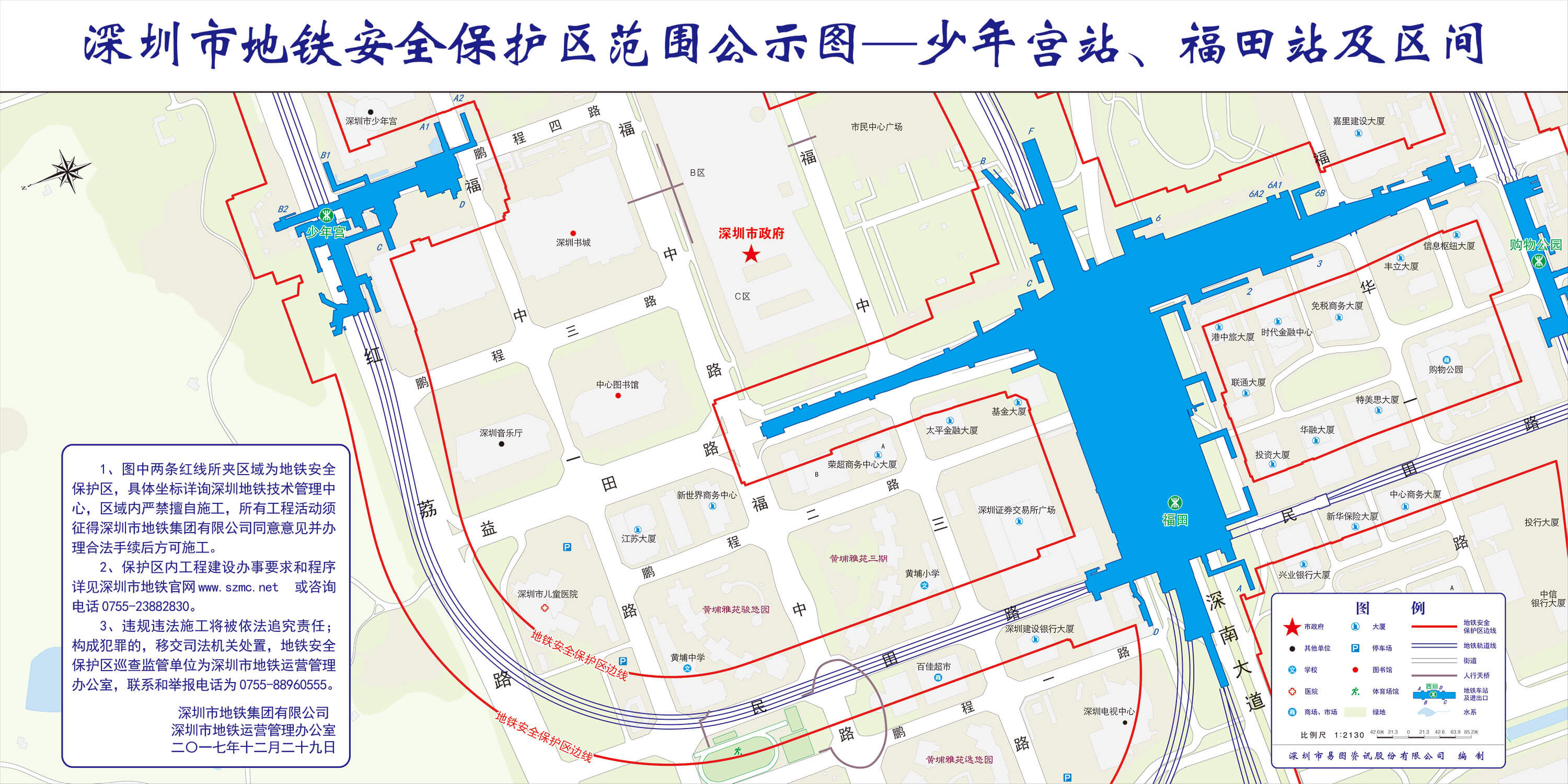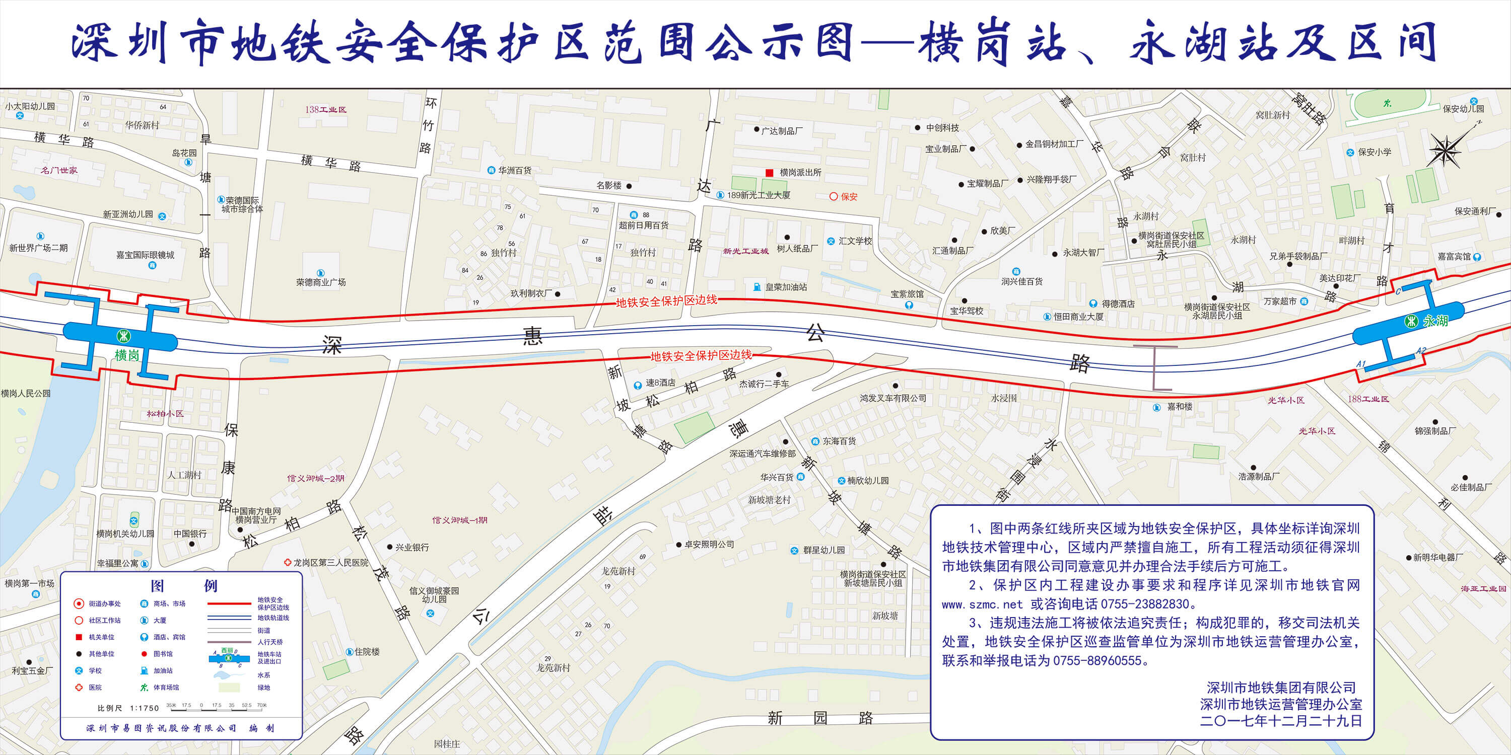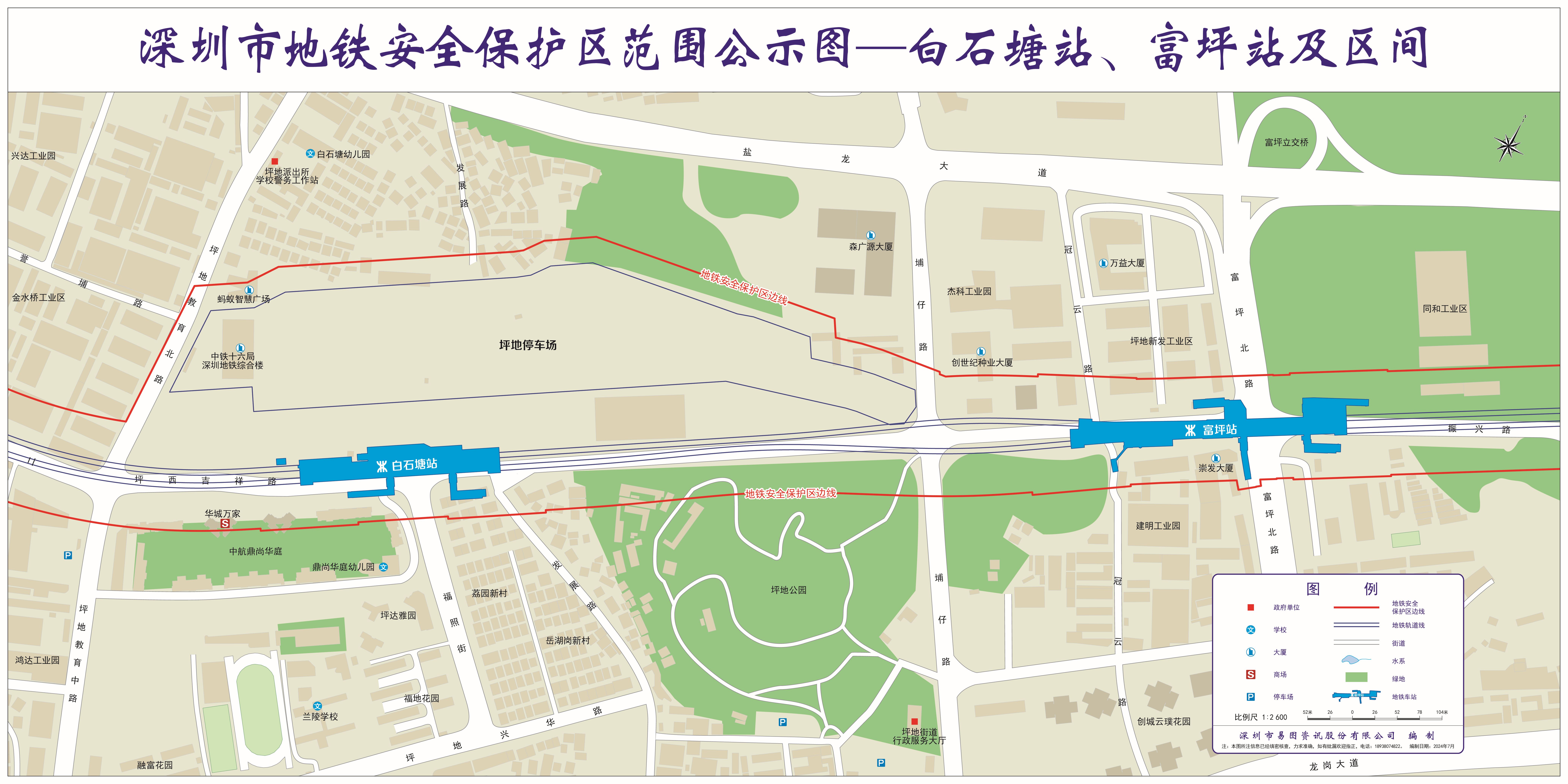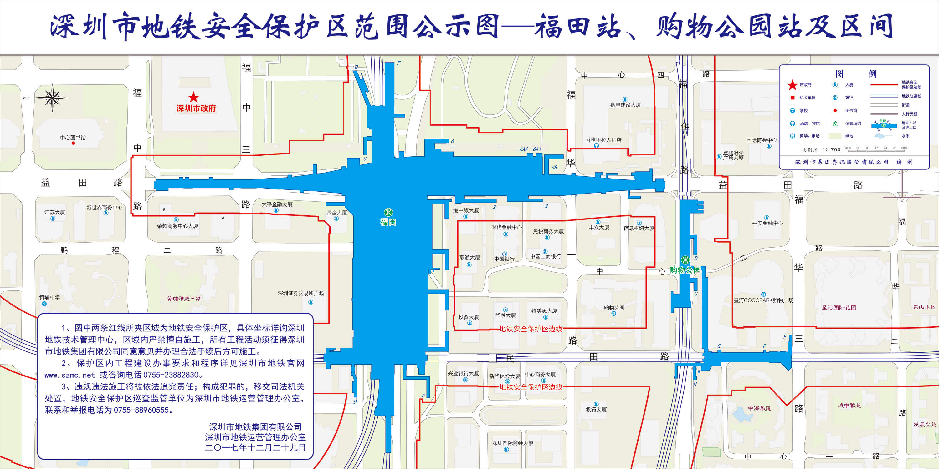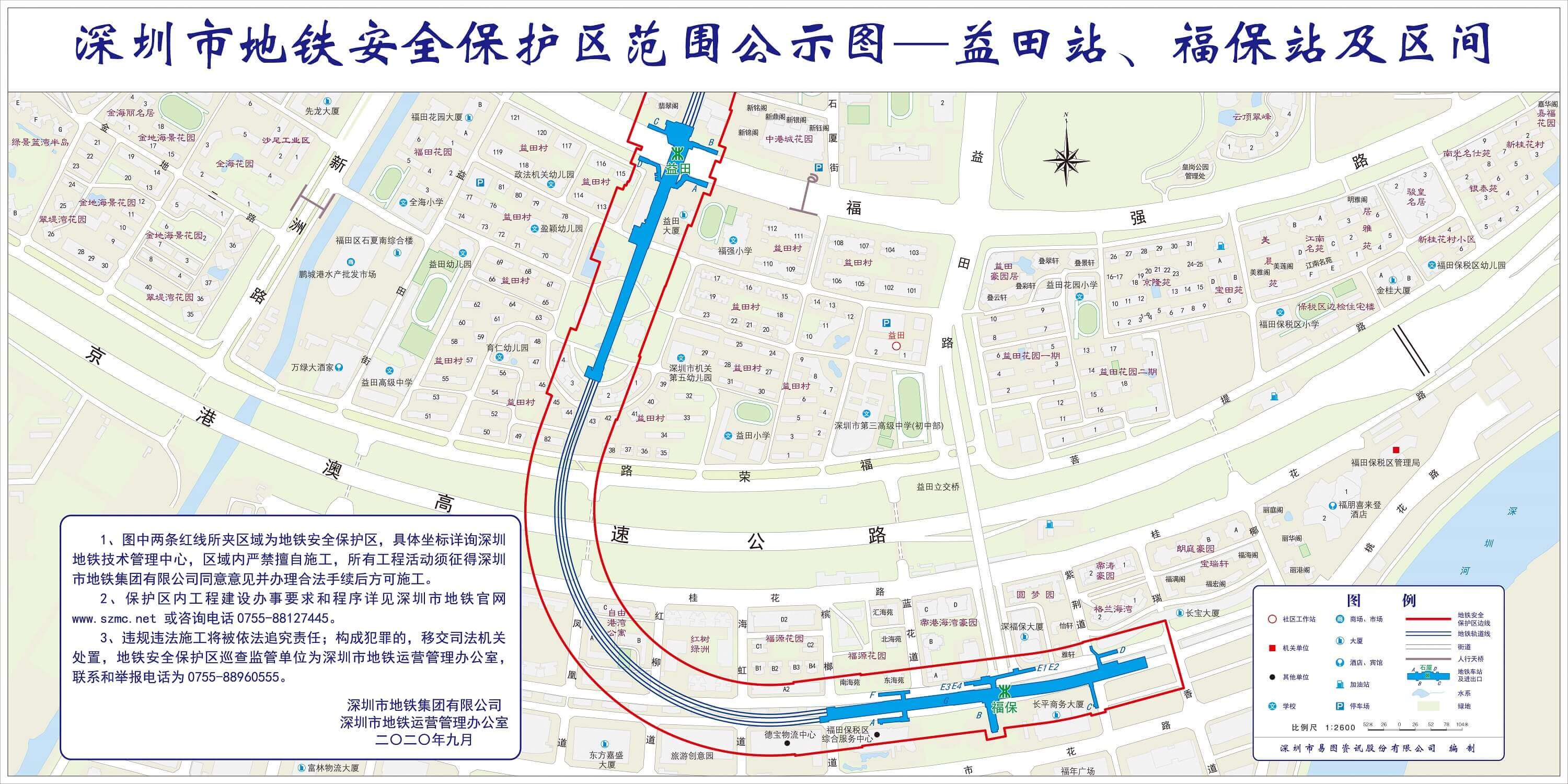 上述线路图仅对各安保区范围内单位提供线路走向参考,发生事故不减免贵司及参建各方的法律、法规和合约责任,详细地铁位置坐标须咨询深圳地铁集团有限公司技术管理中心。