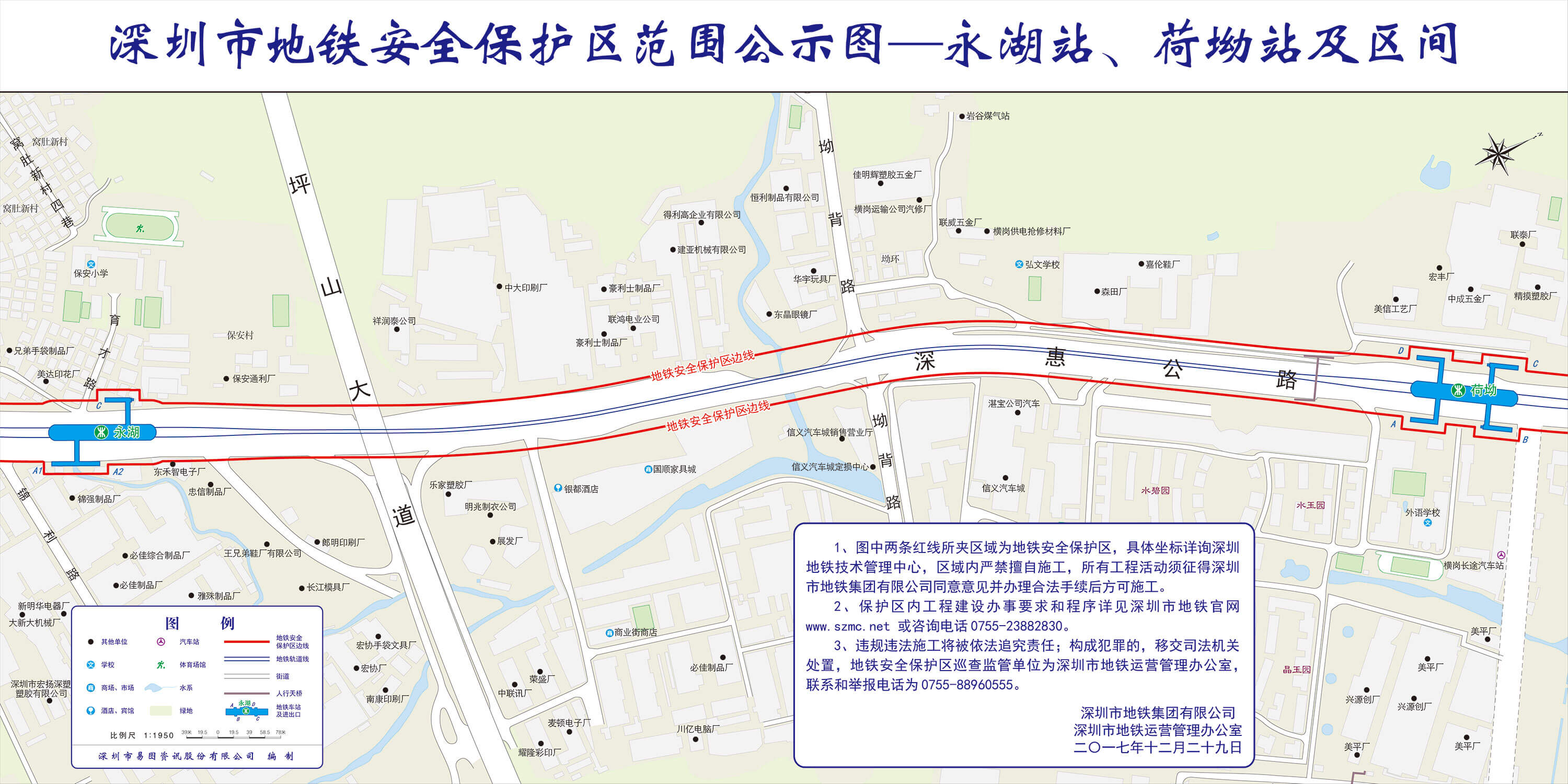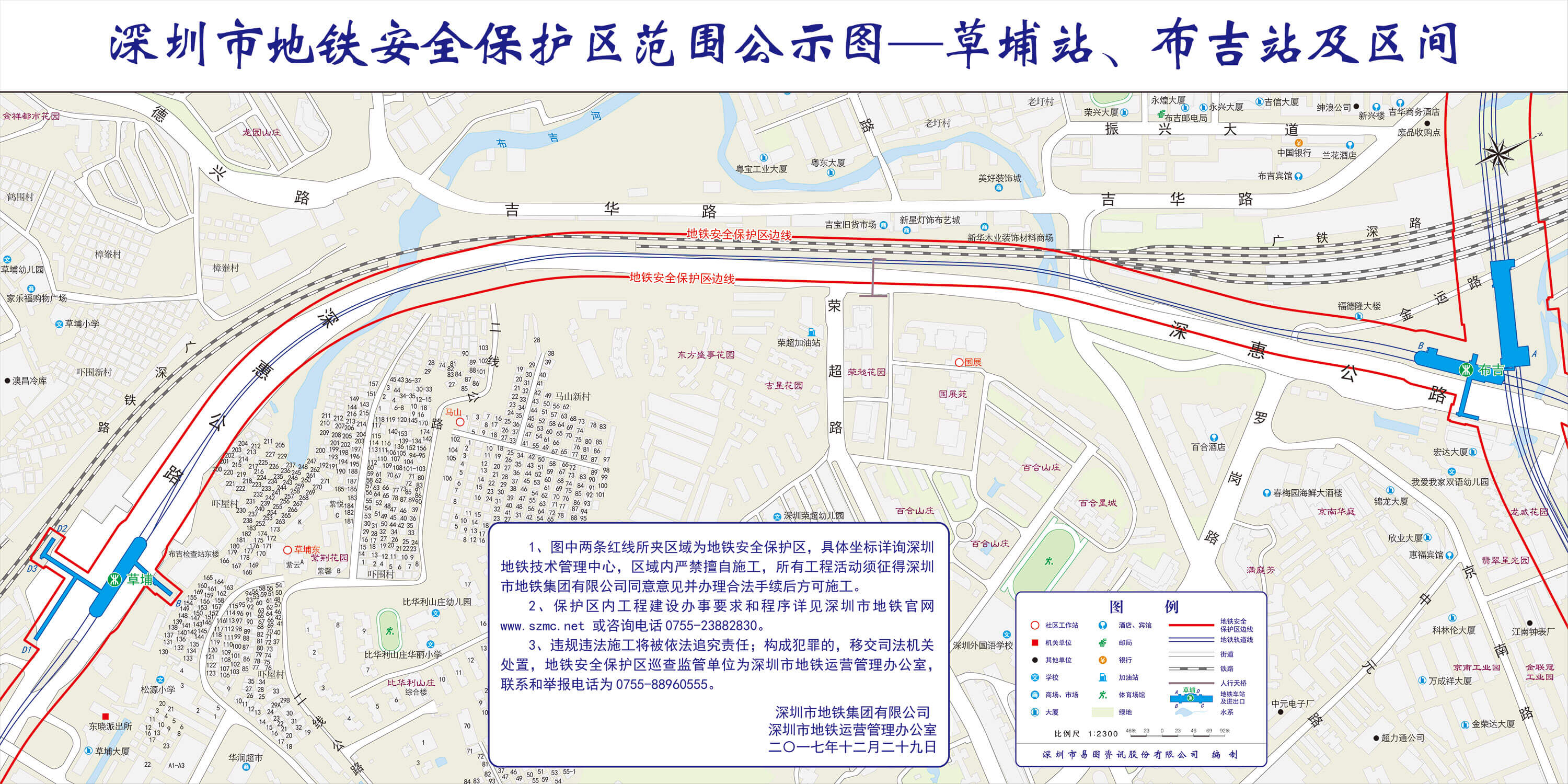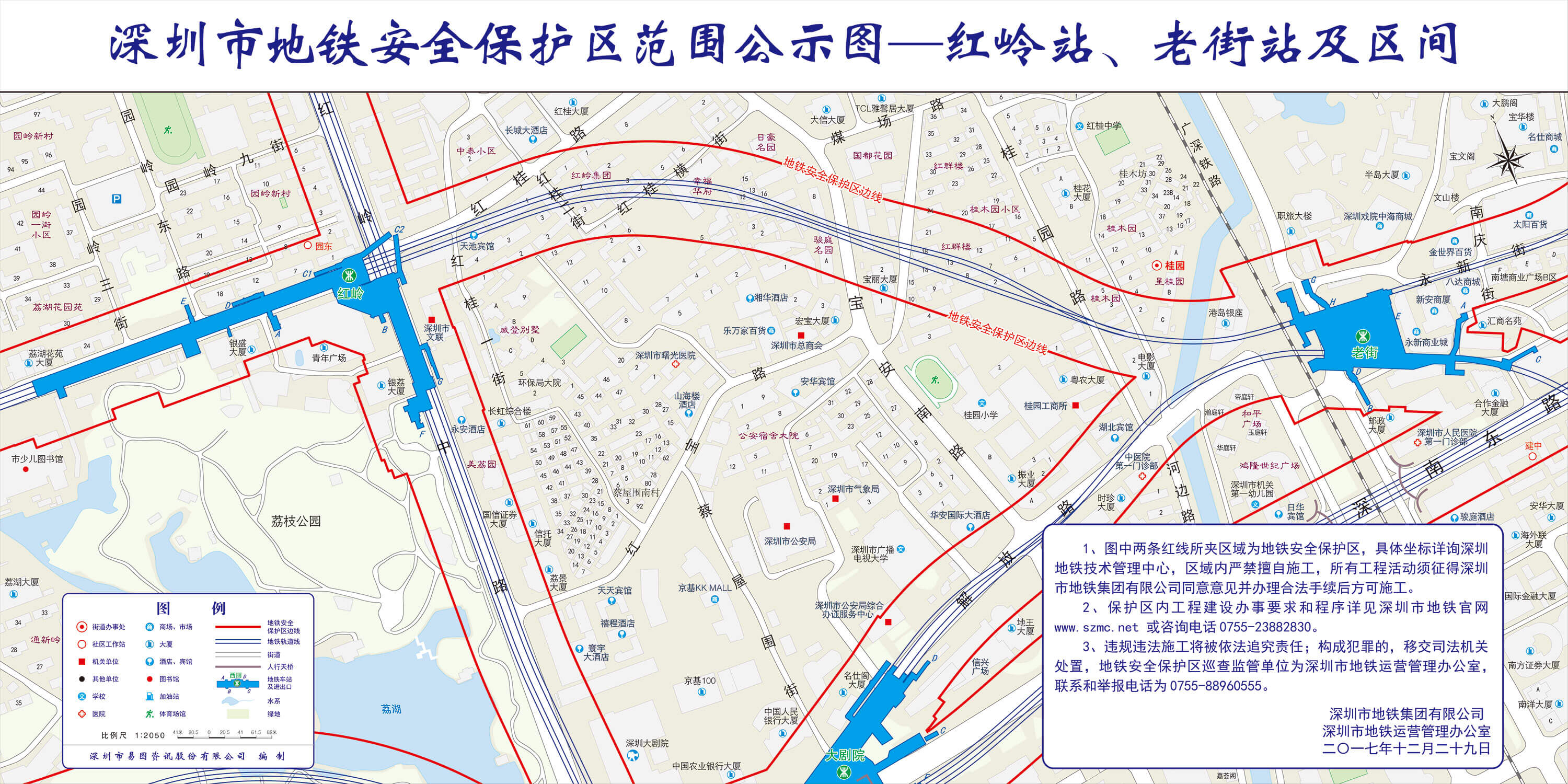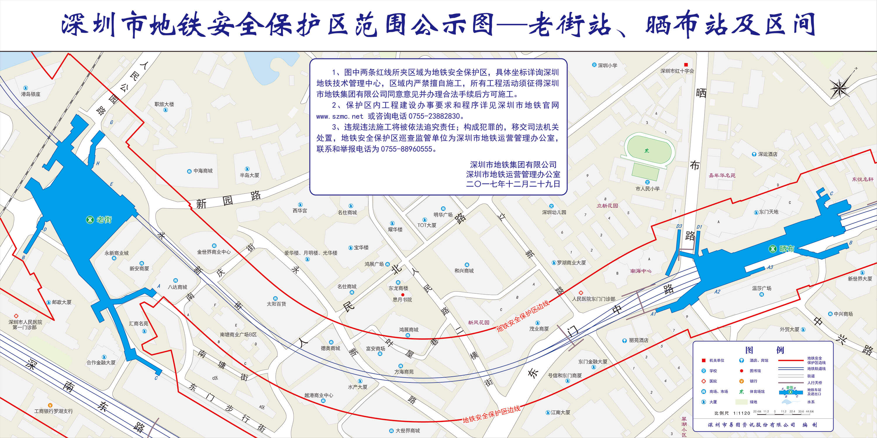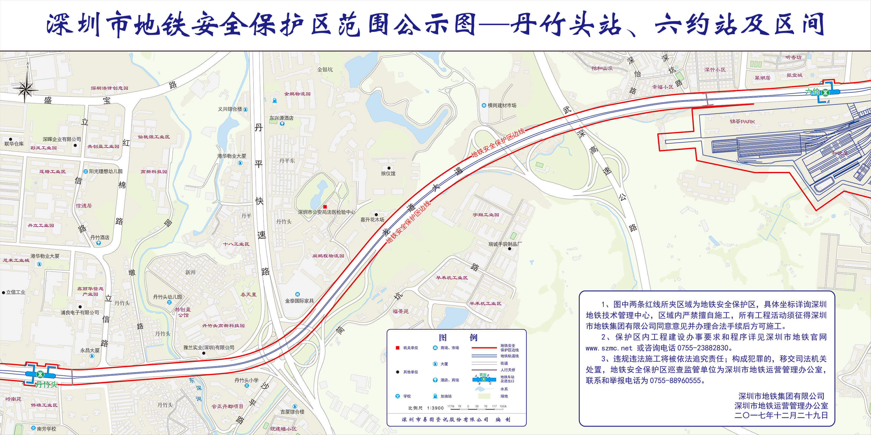 上述线路图仅对各安保区范围内单位提供线路走向参考,发生事故不减免贵司及参建各方的法律、法规和合约责任,详细地铁位置坐标须咨询深圳地铁集团有限公司技术管理中心。