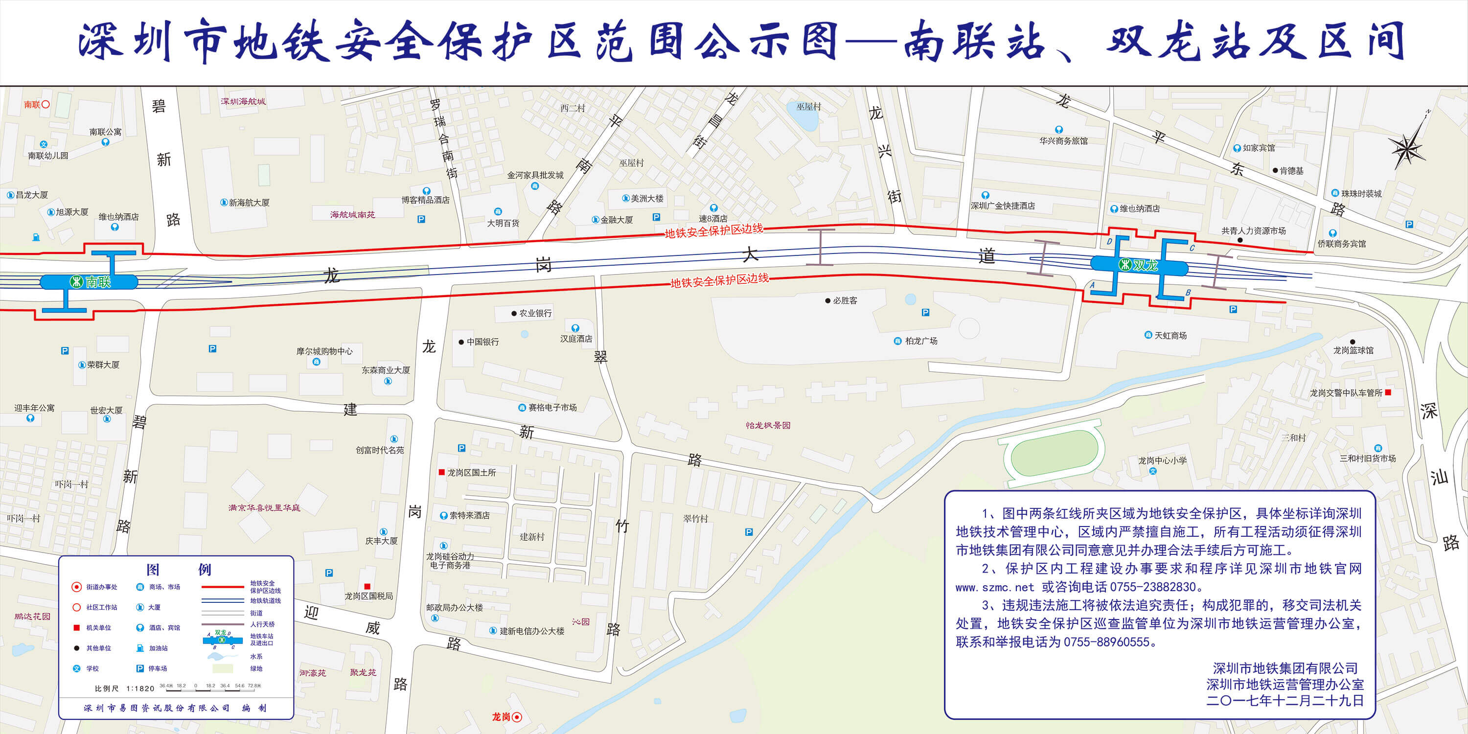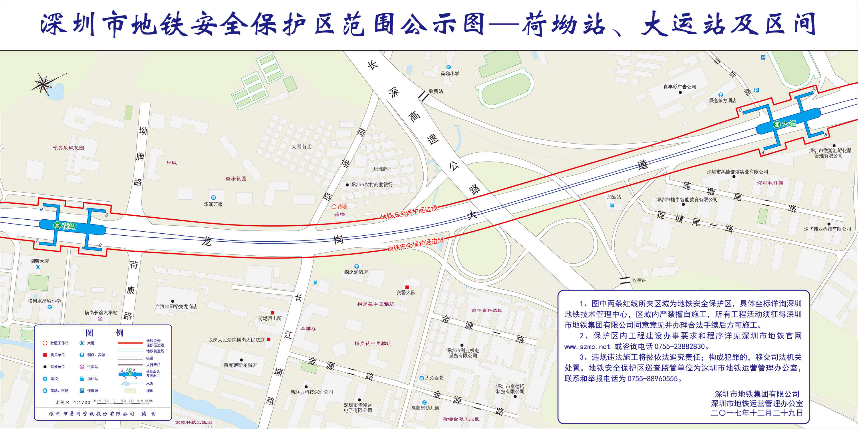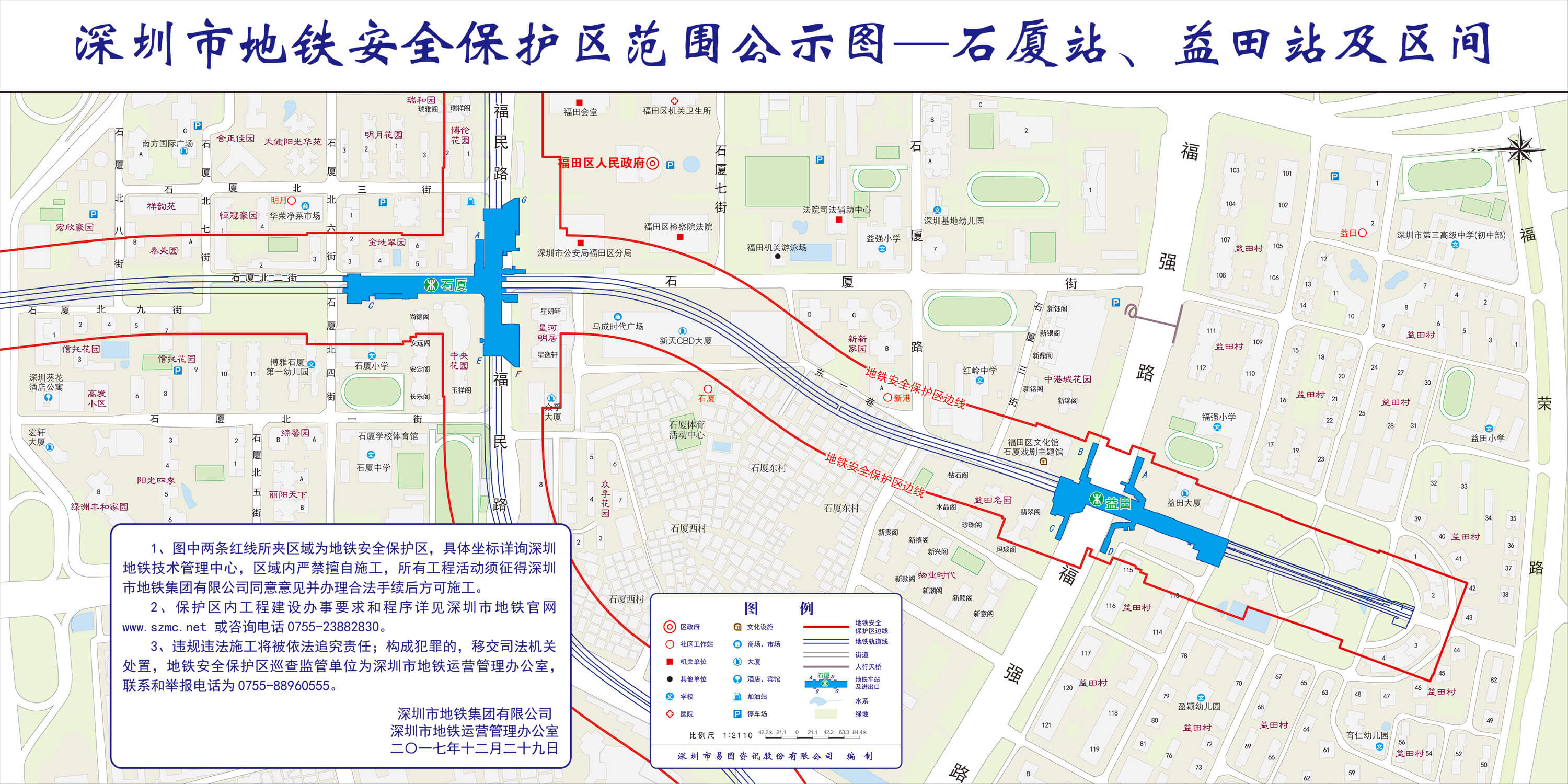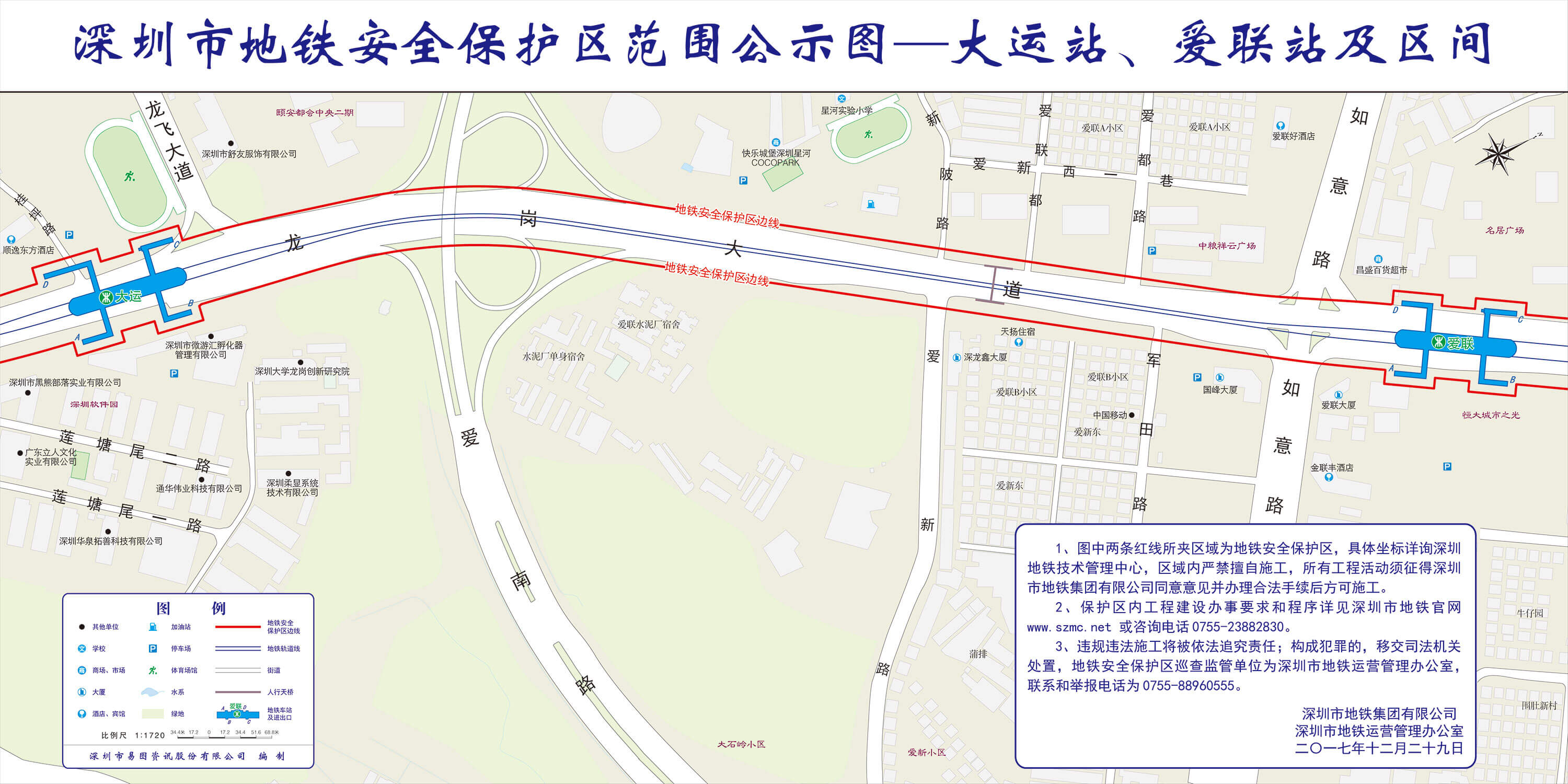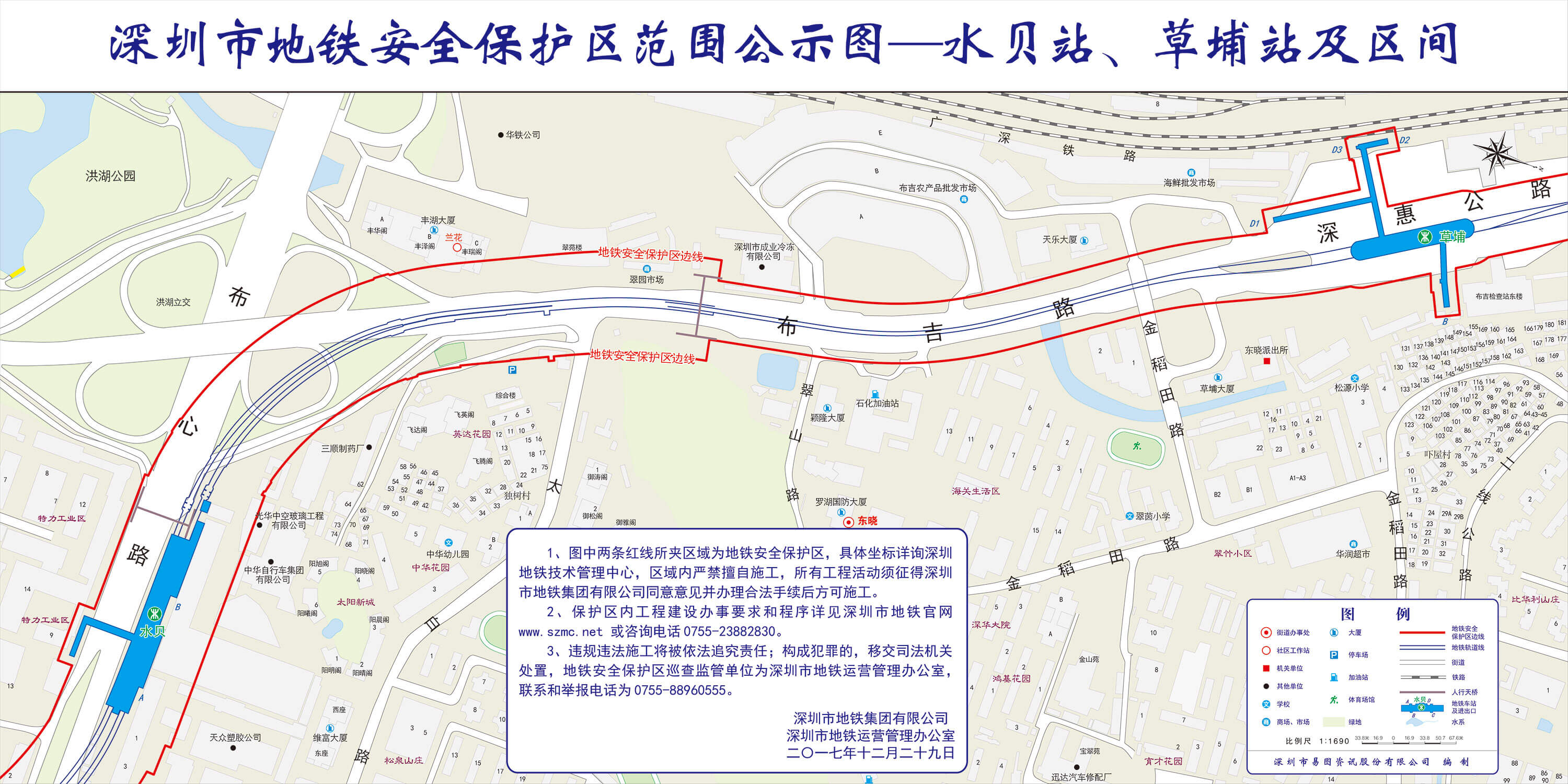 上述线路图仅对各安保区范围内单位提供线路走向参考,发生事故不减免贵司及参建各方的法律、法规和合约责任,详细地铁位置坐标须咨询深圳地铁集团有限公司技术管理中心。