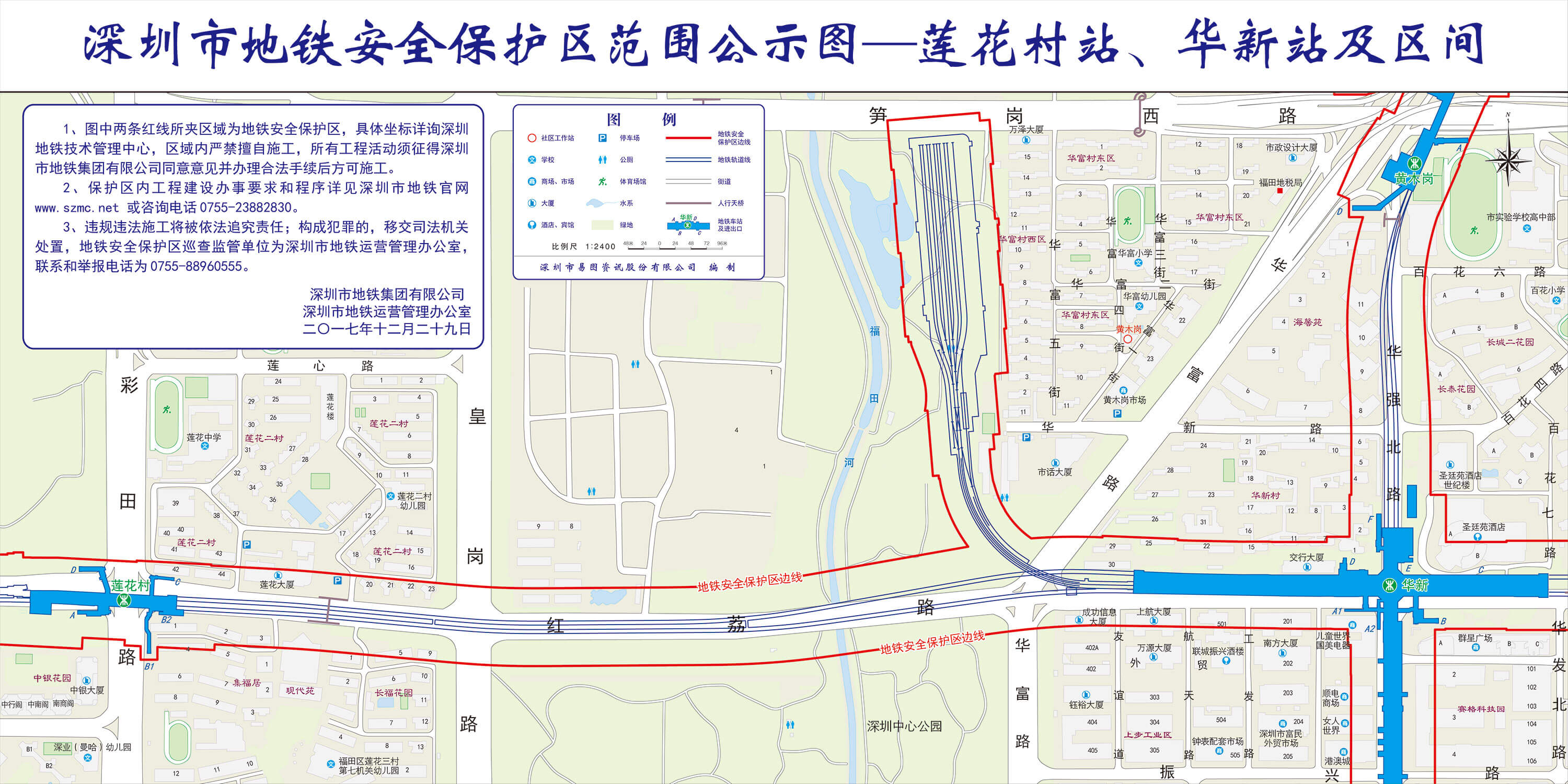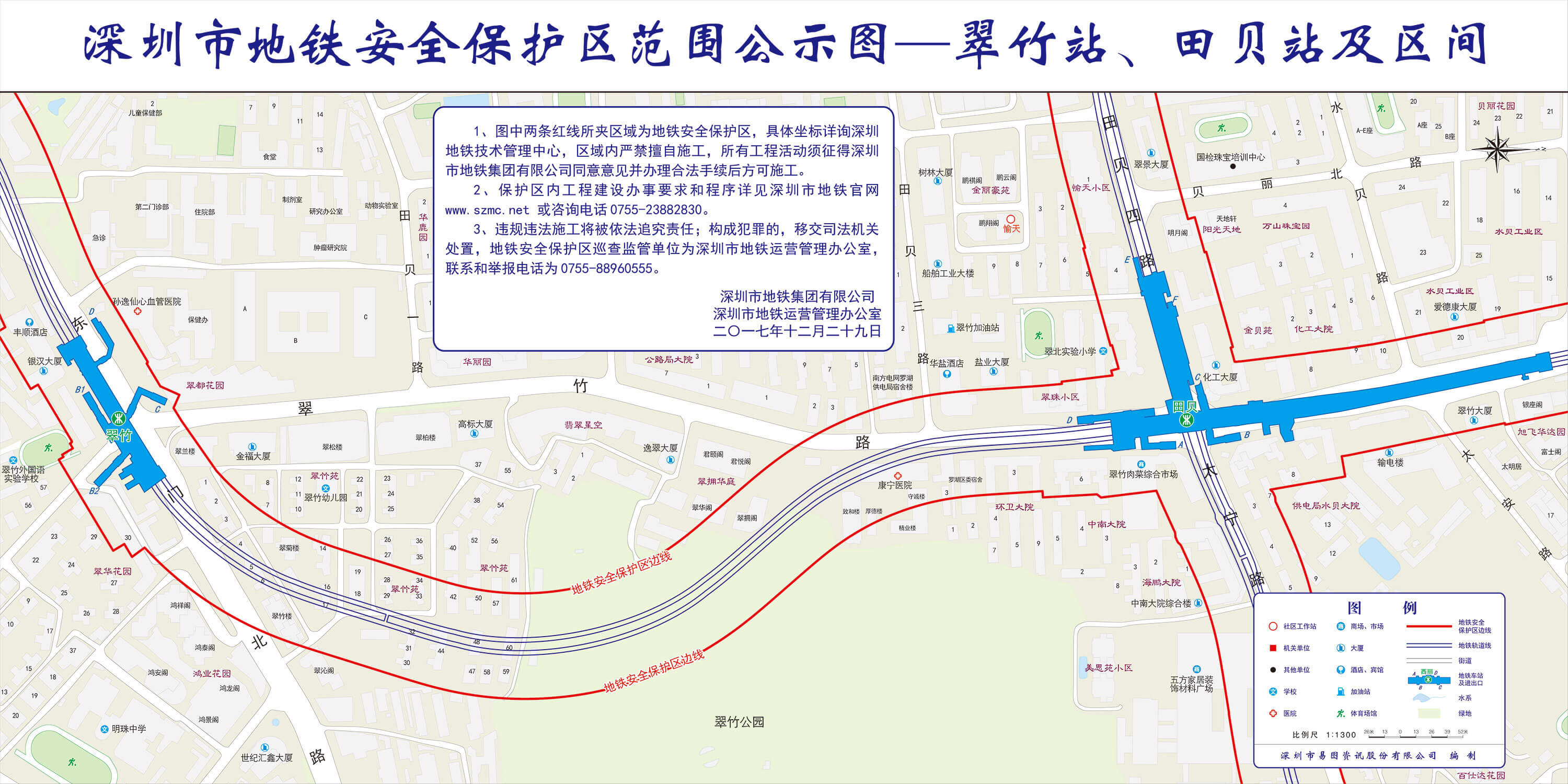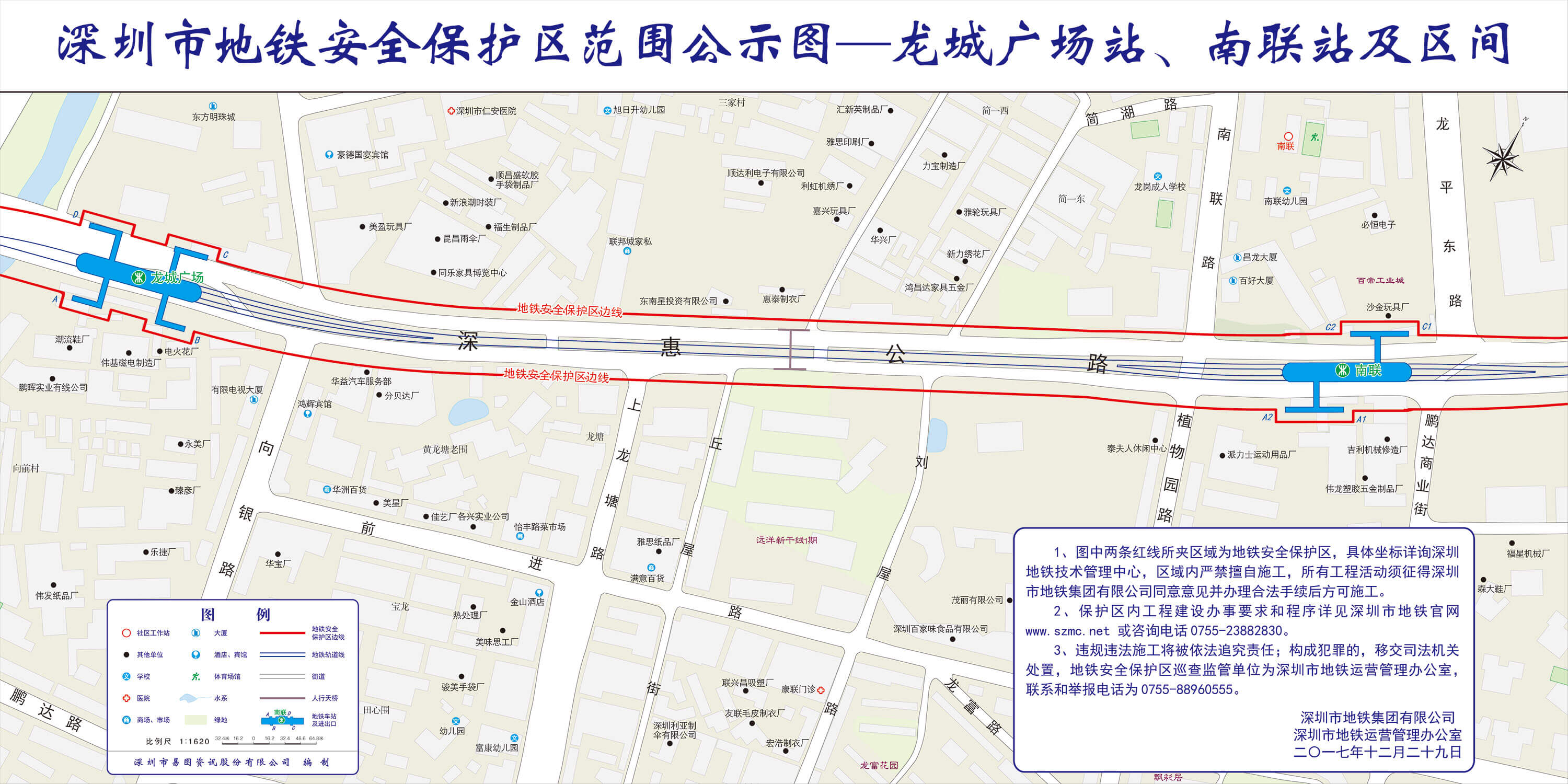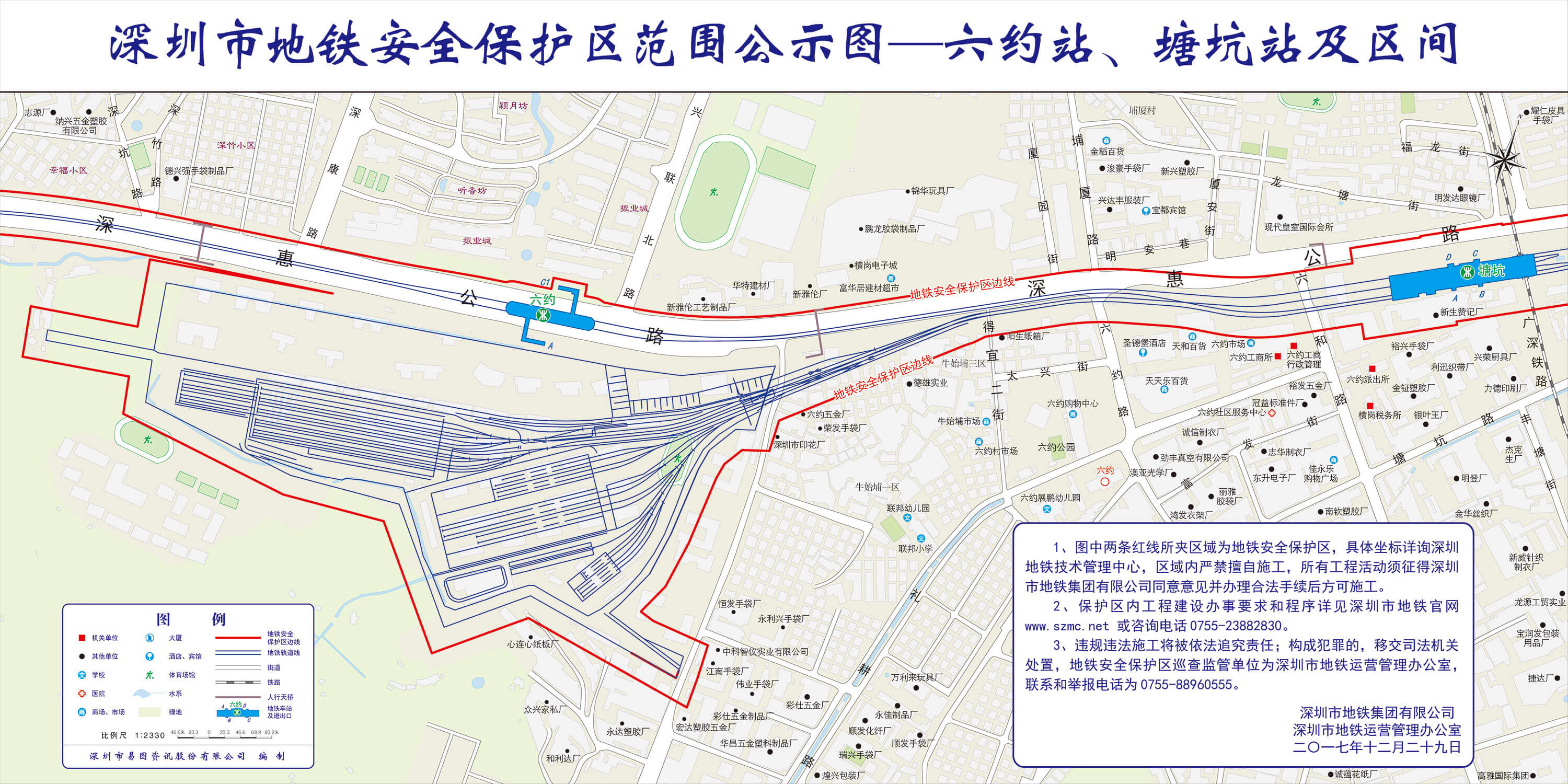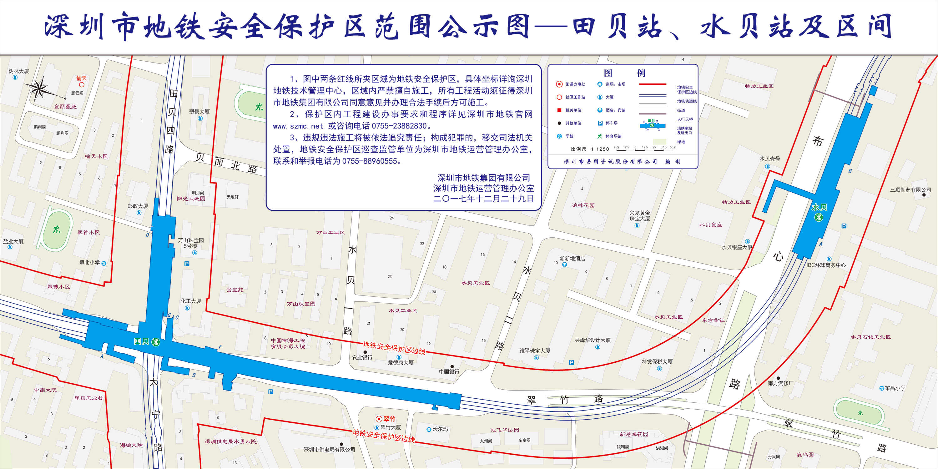 上述线路图仅对各安保区范围内单位提供线路走向参考,发生事故不减免贵司及参建各方的法律、法规和合约责任,详细地铁位置坐标须咨询深圳地铁集团有限公司技术管理中心。