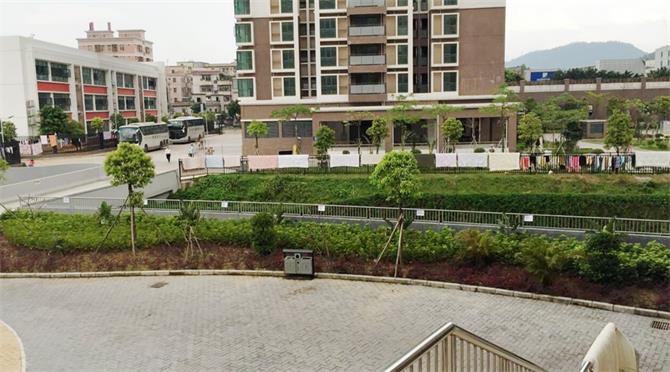 深圳天气特别潮湿,特别三、四月份回南天,一到艳阳天,住户纷纷把累计多日的大量的衣物棉被晾晒出来,小区围墙上、绿化带的小树上、公共走廊上、天台太阳能设施上、架空层给排水管上等都无一辛免挂满了“装饰彩带”和“万国旗”。