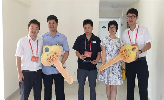 9点开始正式放号办理入住,9:20左右,第一户在经过签到、资料验证、签约、物品领取等办理程序后拿到了梦寐以求的房间钥匙,再一次体现了我们守程序、讲效率的地铁物业文化。