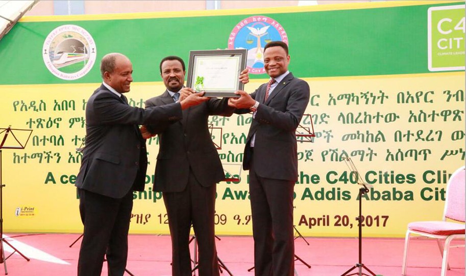 (埃塞当地时间)2017年4月20日上午,C40全球城市绿色发展交通领袖奖发证仪式在埃塞俄比亚首都亚的斯亚贝巴轻轨总部kality车辆段维修楼前隆重举行。C40国际城市气候领导集团非洲区总监哈斯丁斯奇科柯、亚的斯亚贝巴市市长德瑞巴库玛、埃塞铁路公司总裁格塔丘贝特鲁、埃塞政府高官、AALRTS总经理助理王伟、学习总经理汉诺克及各部门中埃方总监等受邀出席该仪式。埃塞俄比亚广播公司等埃国内各大主流媒体进行了现场报道,并向埃塞全国宣传直播。