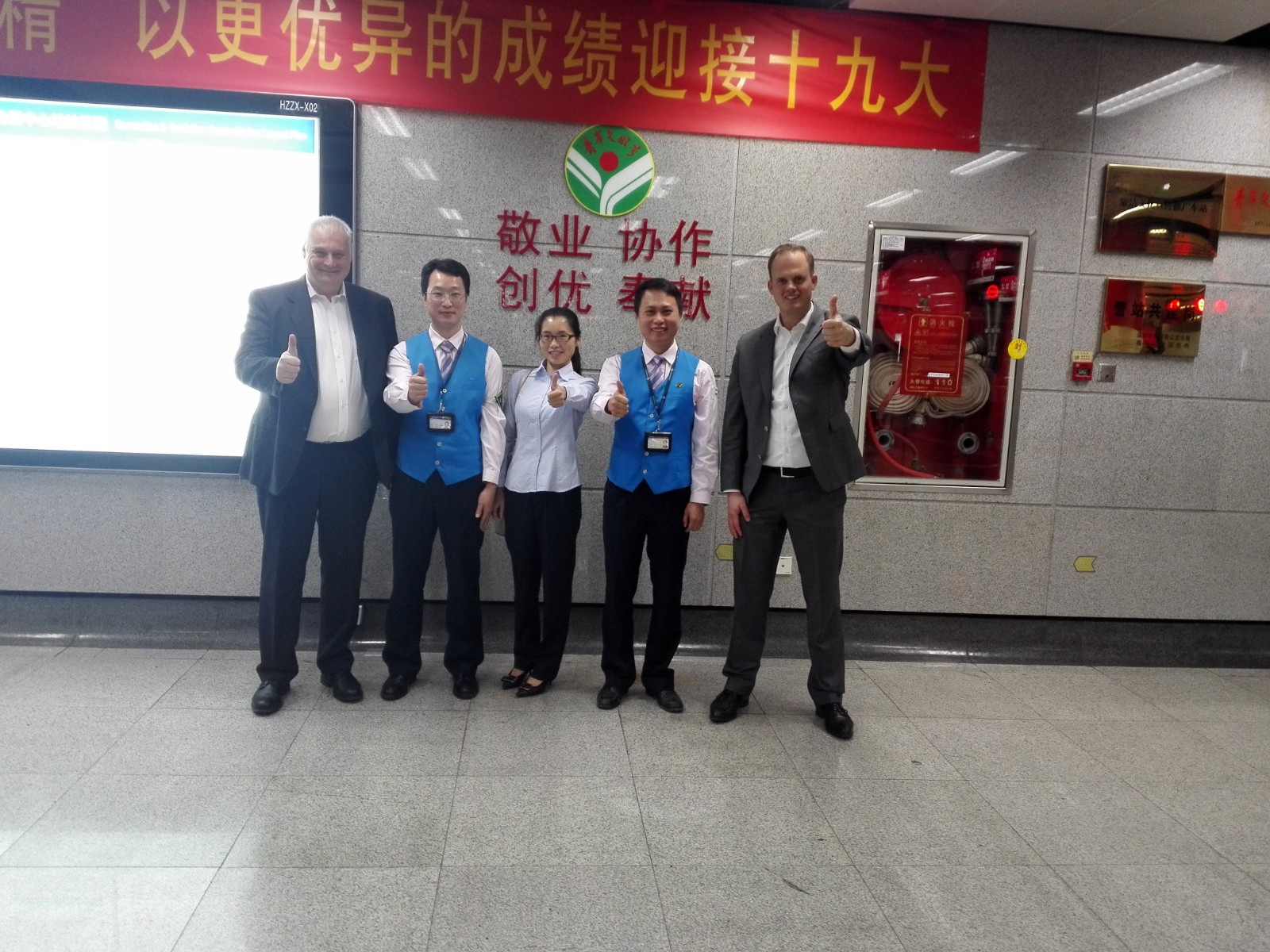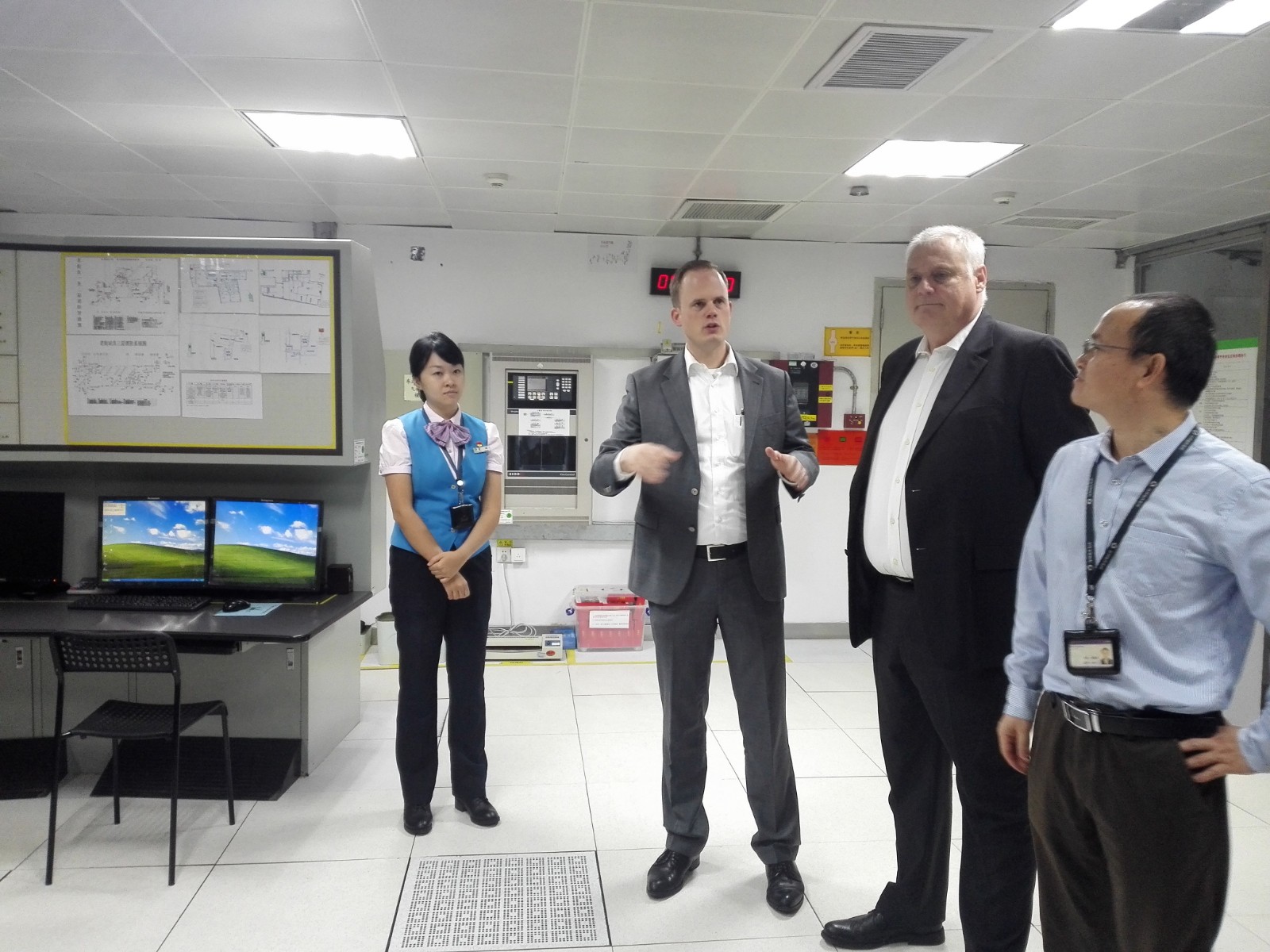 在老街及会展中心站,慕尼黑轻轨运营官及运营经理听取了车站工作人员对于日常客流及大客流组织的详细介绍,并对站内的客流组织情况进行了实地考察,他们表示深圳地铁的客流组织很到位,乘客素质也很高,对于他们有很多参考和借鉴意义;同时,他们还了解了车控室的各类系统设备、安保器材、消防设备等。在NOCC,两位德国专家主要了解了行车指挥的岗位设置,应急情况下的行车指挥,以及司机出退勤管理等,对于我司的线网规模及调度指挥能力深感震撼。