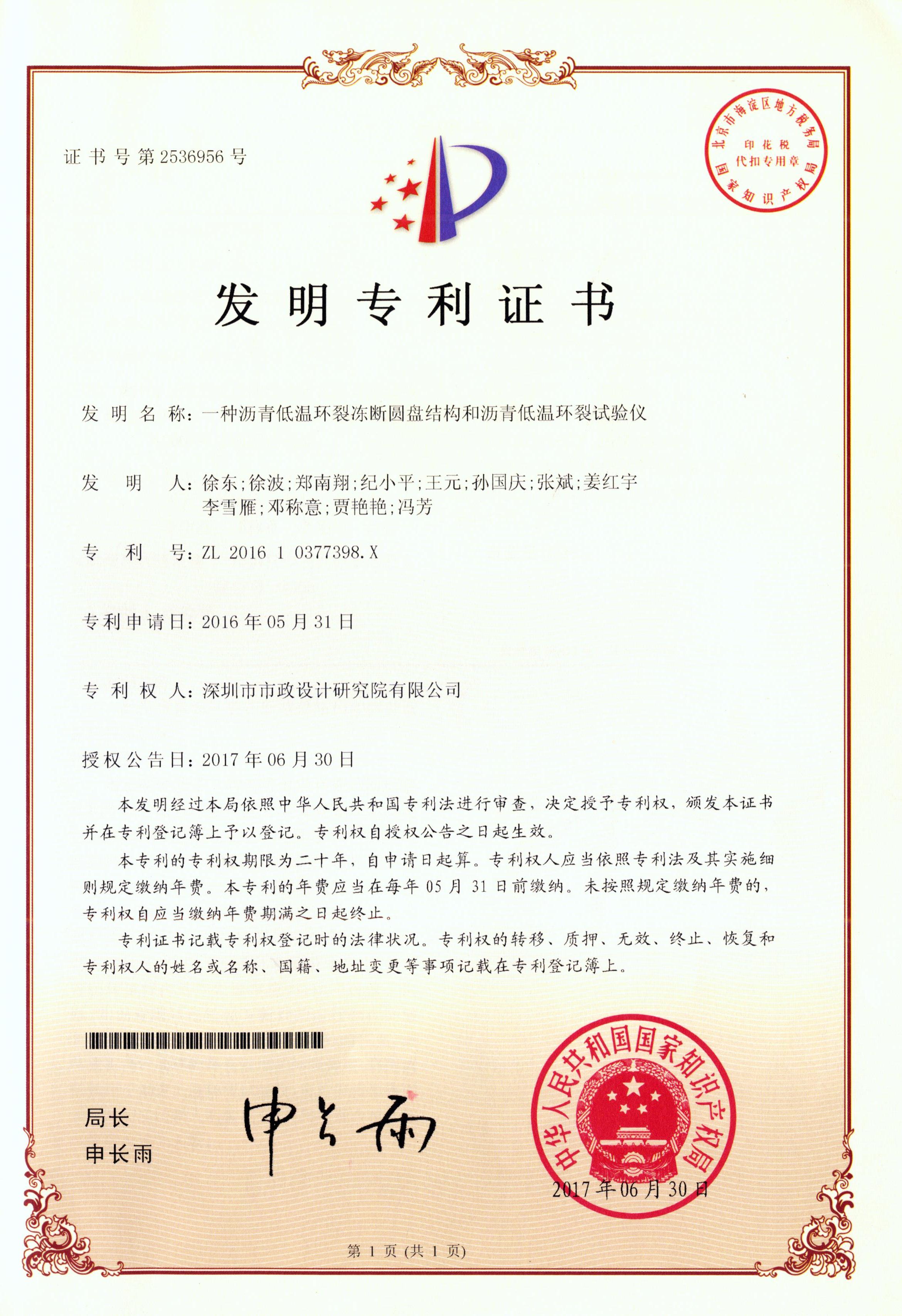 一种沥青低温环裂冻断圆盘结构和沥青低温环裂试验仪