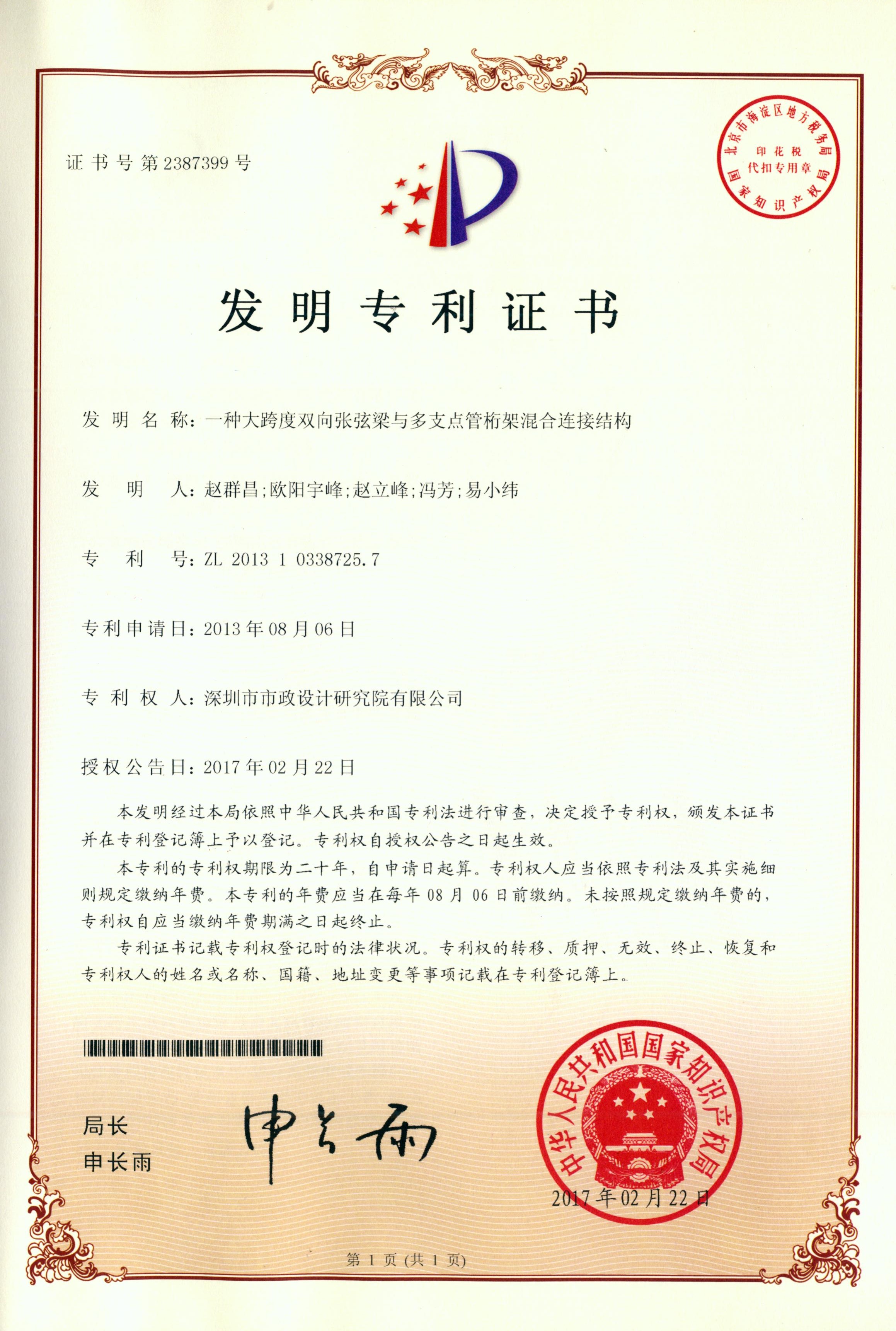 一种大跨度双向张弦梁与多支点管桁架混合连接结构